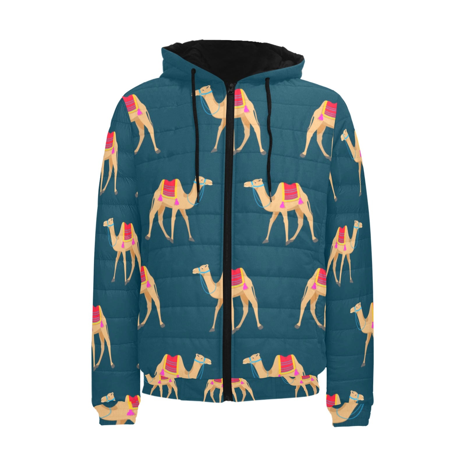 Camel pattern blue blackground Men's Padded Hooded Jacket
