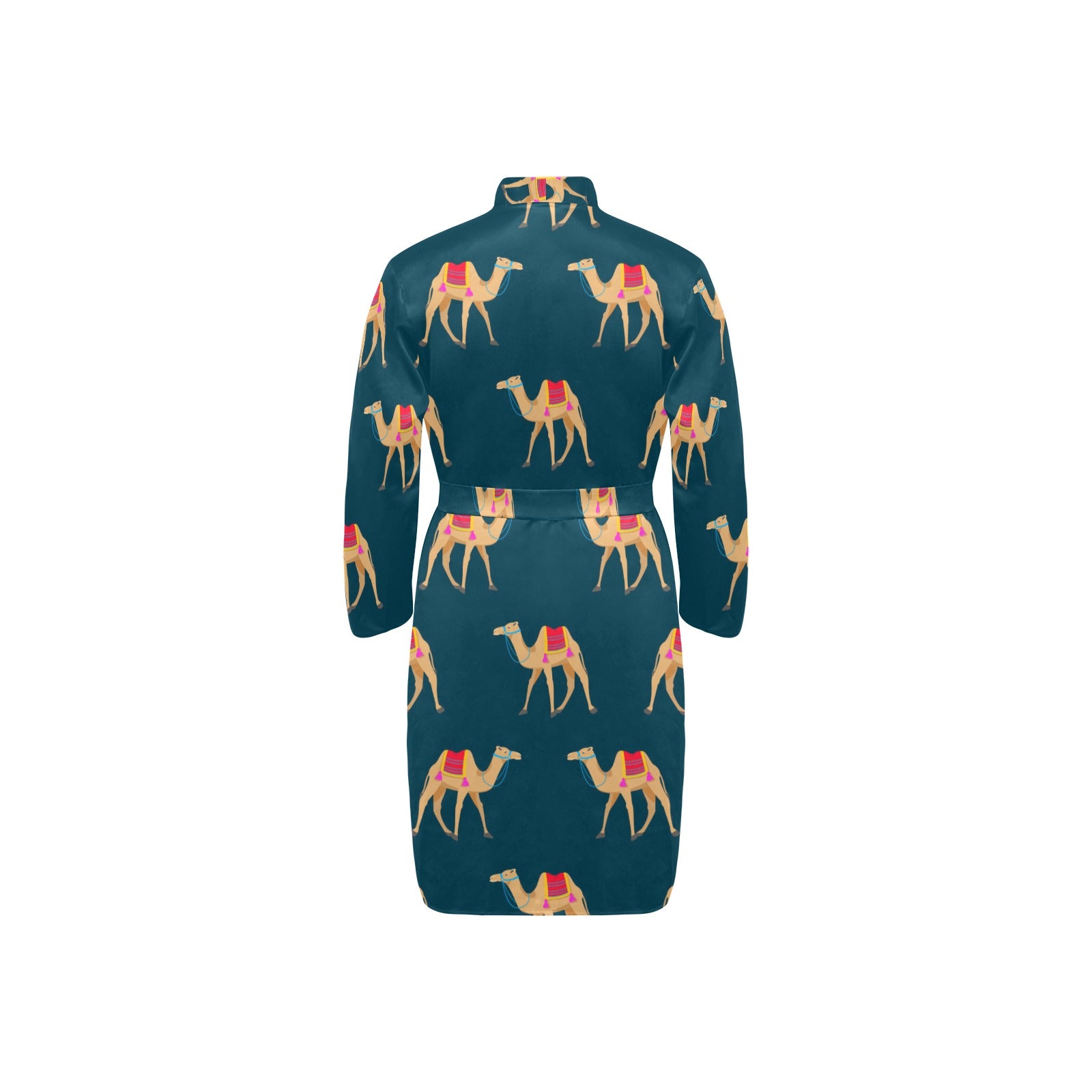 Camel pattern blue blackground Men's Long Sleeve Belted Night Robe