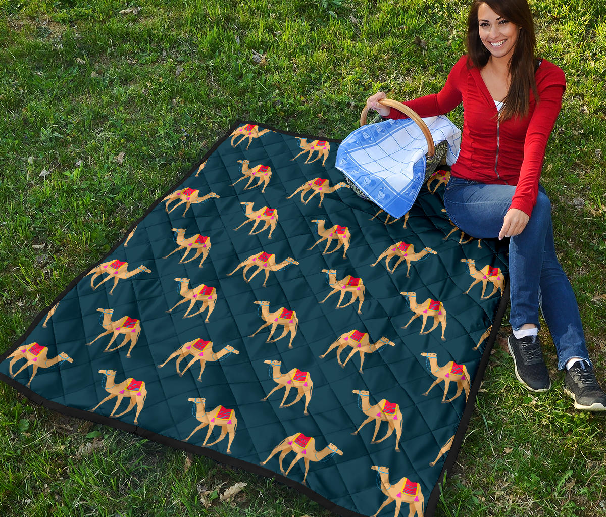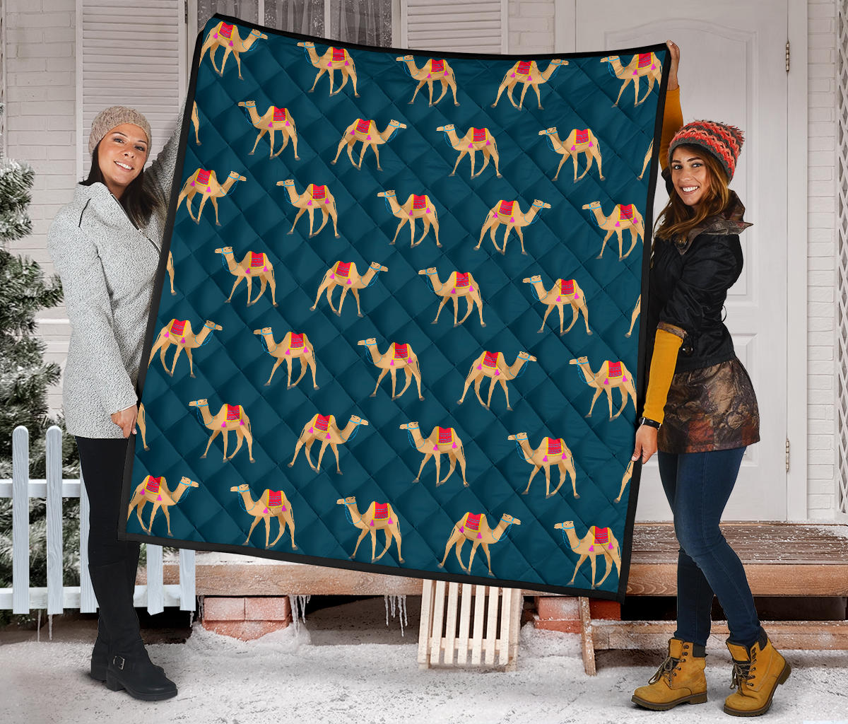 Camel Pattern Blue Blackground Premium Quilt is a uniqued design and limited item. It made to order, hand printed, and sewn with love in our factory.