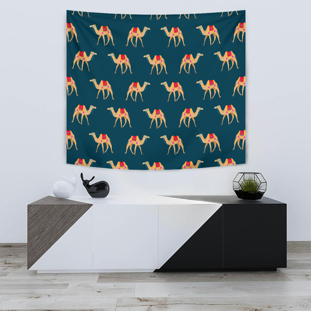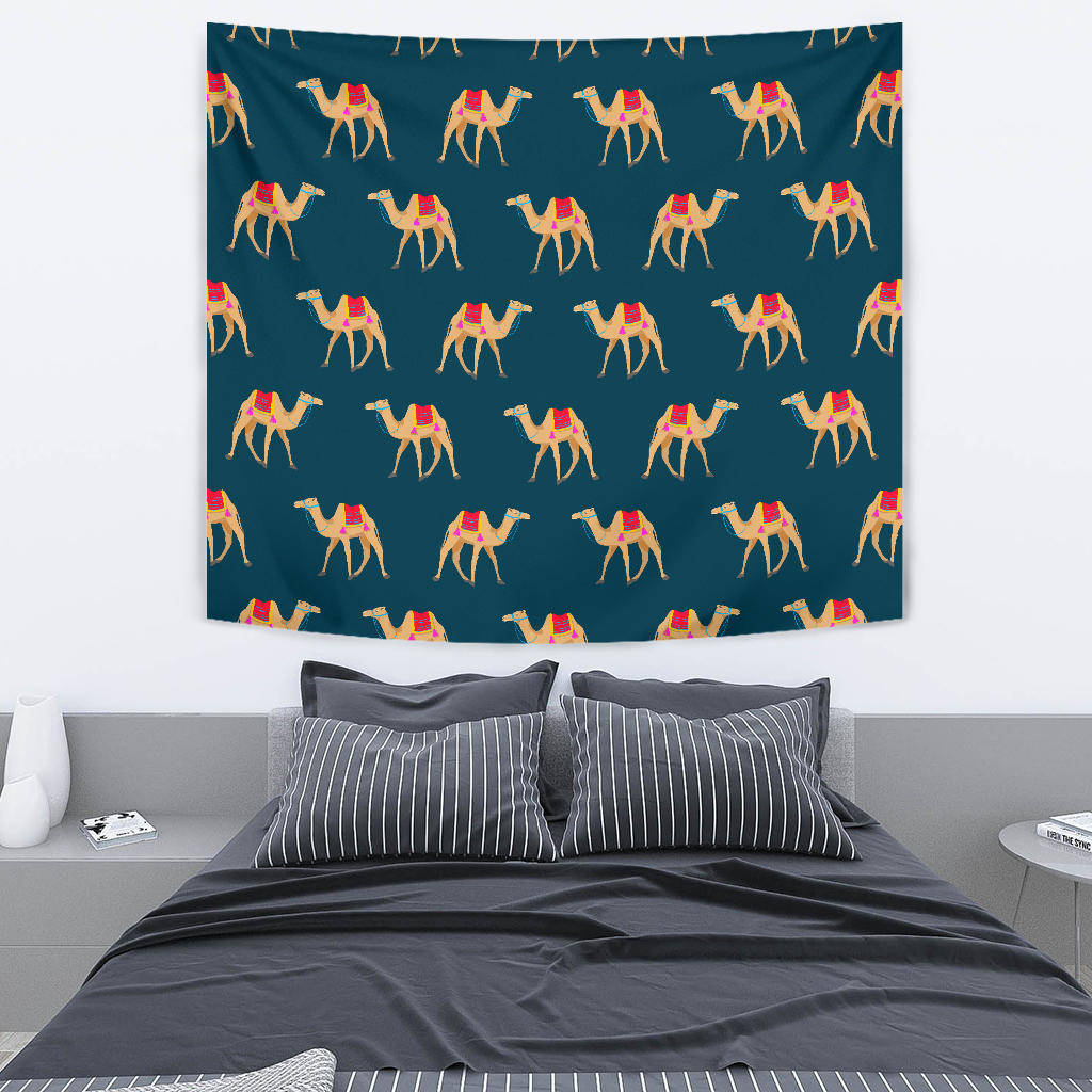 Camel pattern blue blackground Tapestry is a uniqued design and limited item. It made to order, hand printed, and sewn with love in our factory.