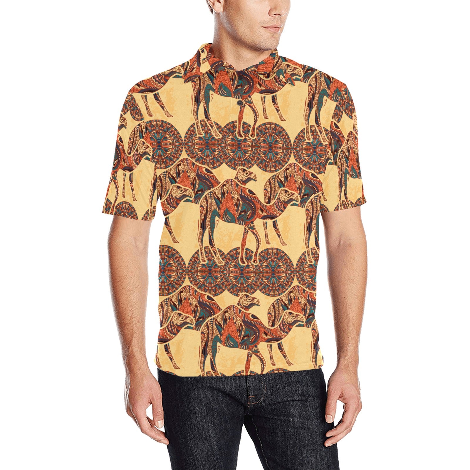 Camel polynesian tribal design pattern Men's All Over Print Polo Shirt