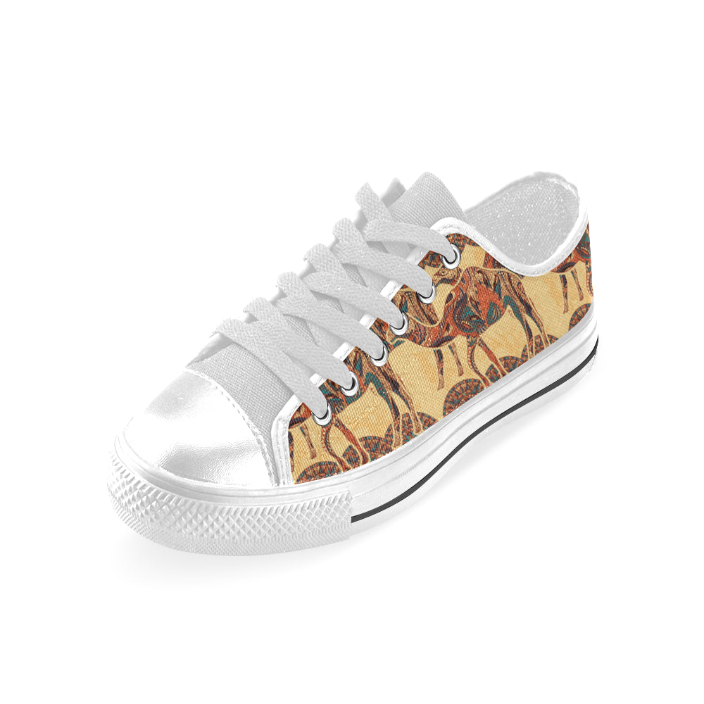 Camel polynesian tribal design pattern Men's Low Top Shoes White