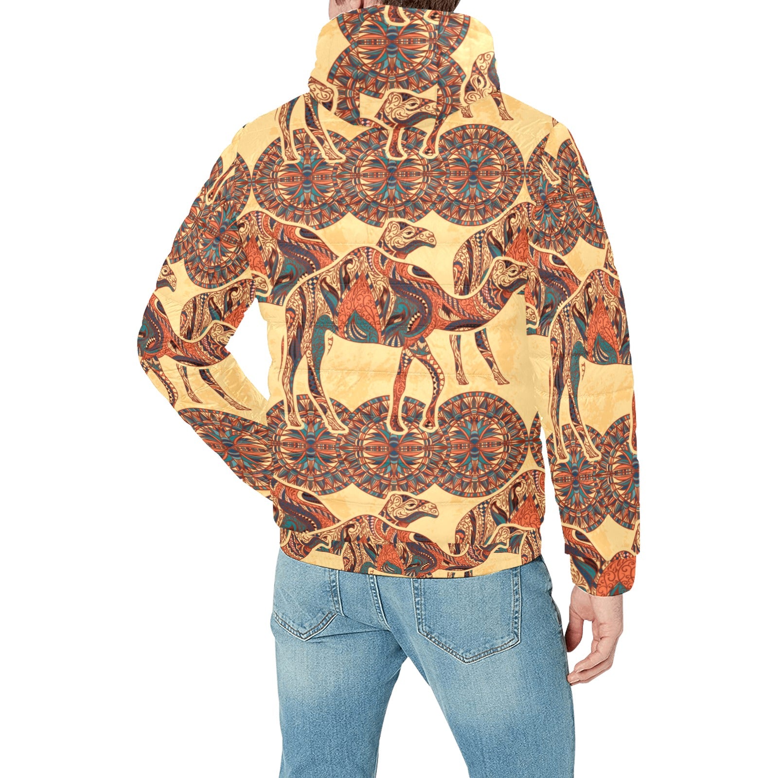 Camel polynesian tribal design pattern Men's Padded Hooded Jacket