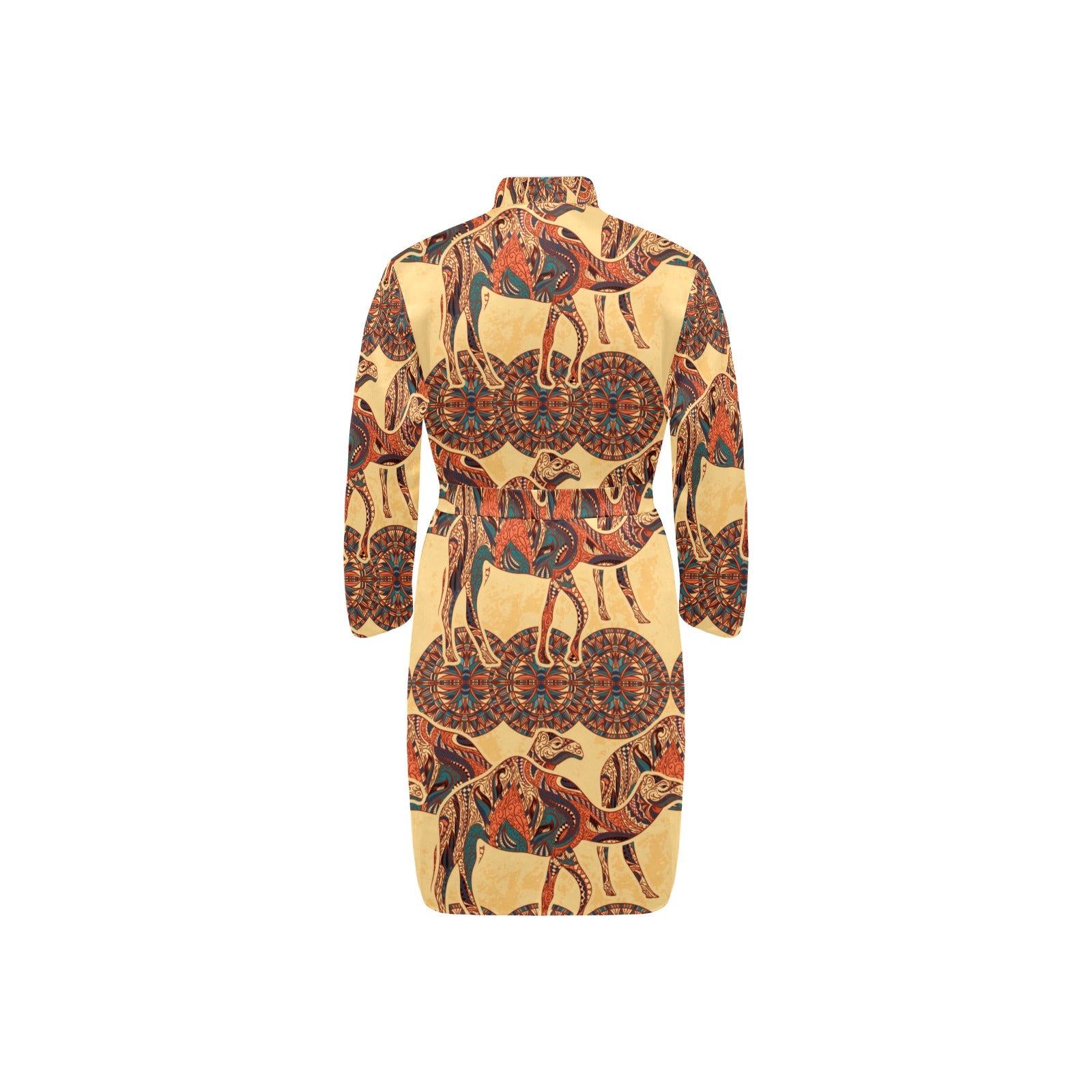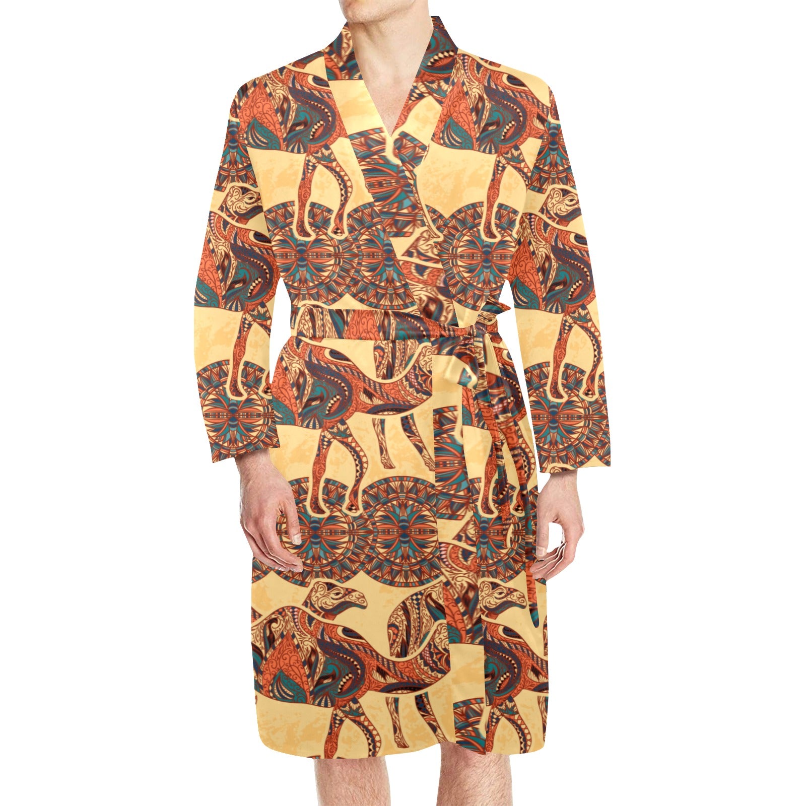 Camel polynesian tribal design pattern Men's Long Sleeve Belted Night Robe