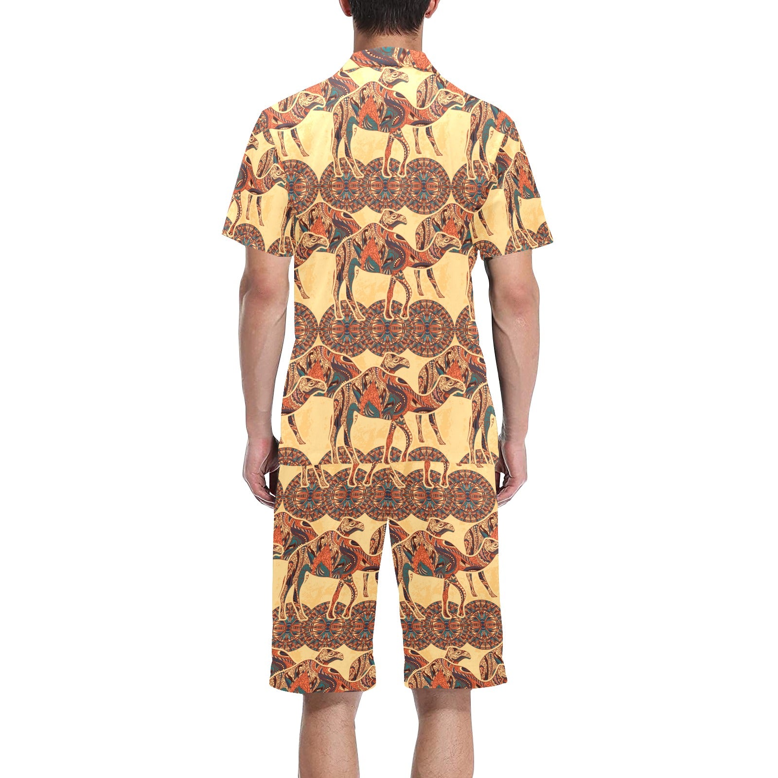 Camel polynesian tribal design pattern Men's V-Neck Short Pajama Set