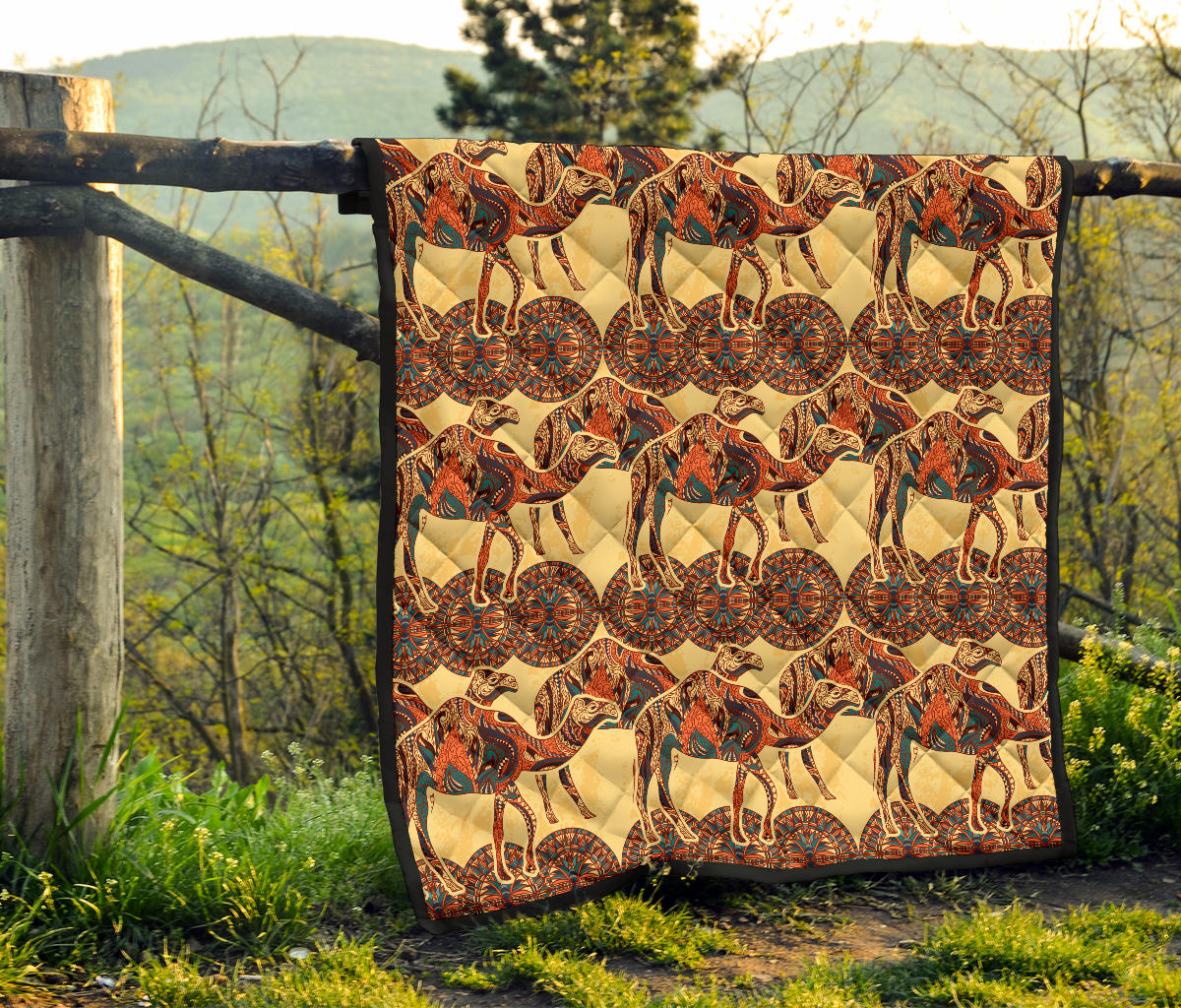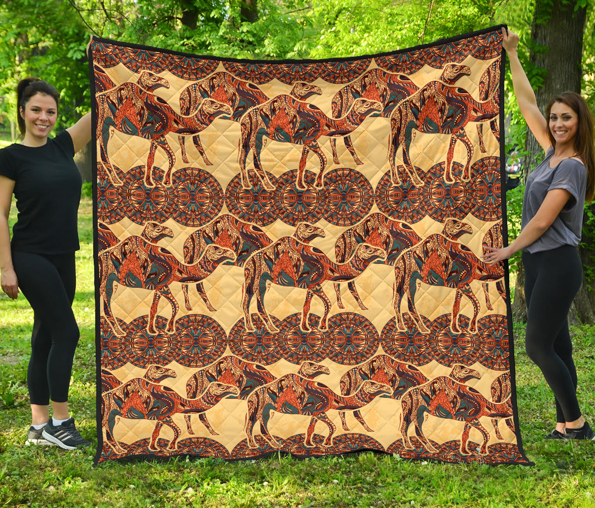 Camel Polynesian Tribal Design Pattern Premium Quilt is a uniqued design and limited item. It made to order, hand printed, and sewn with love in our factory.