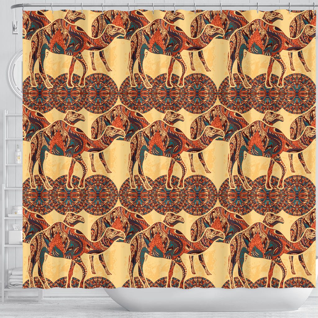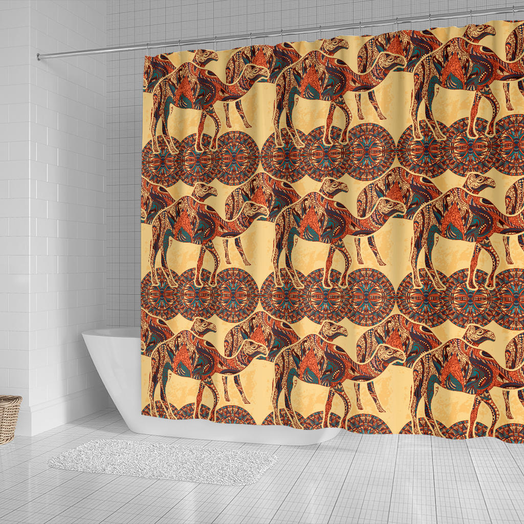 Camel Polynesian Tribal Design Pattern Shower Curtain Fulfilled In US