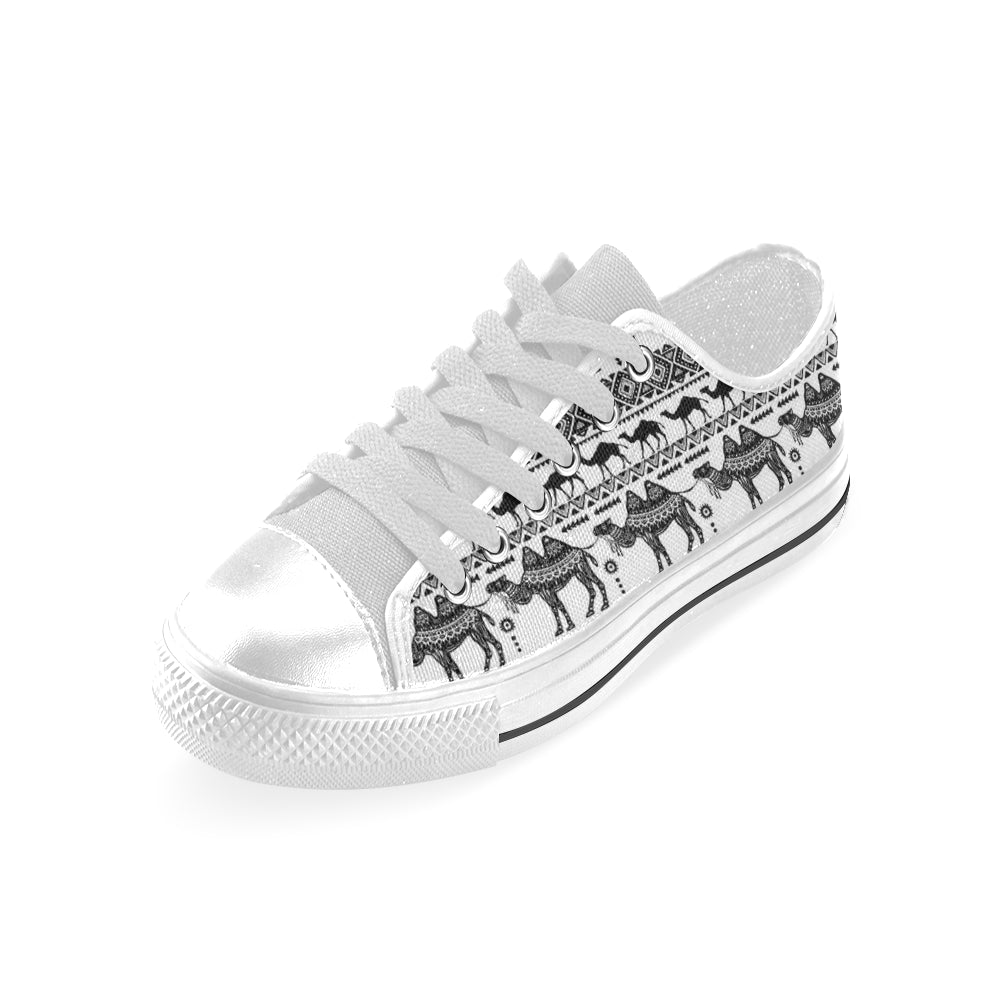 Camel polynesian tribal pattern Men's Low Top Shoes White