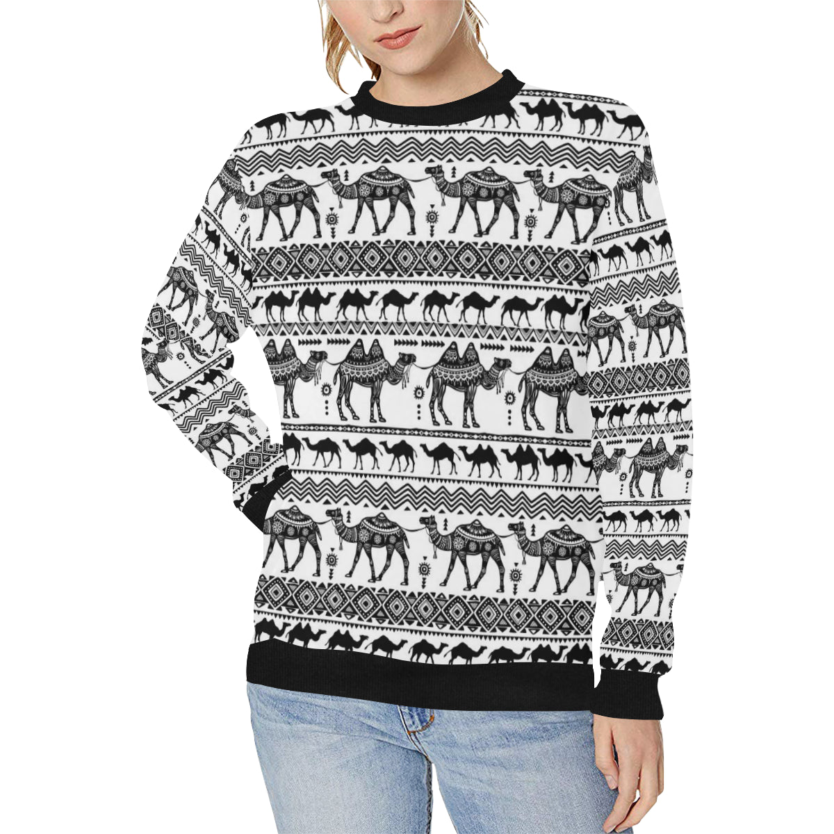 Camel polynesian tribal pattern Women's Crew Neck Sweatshirt