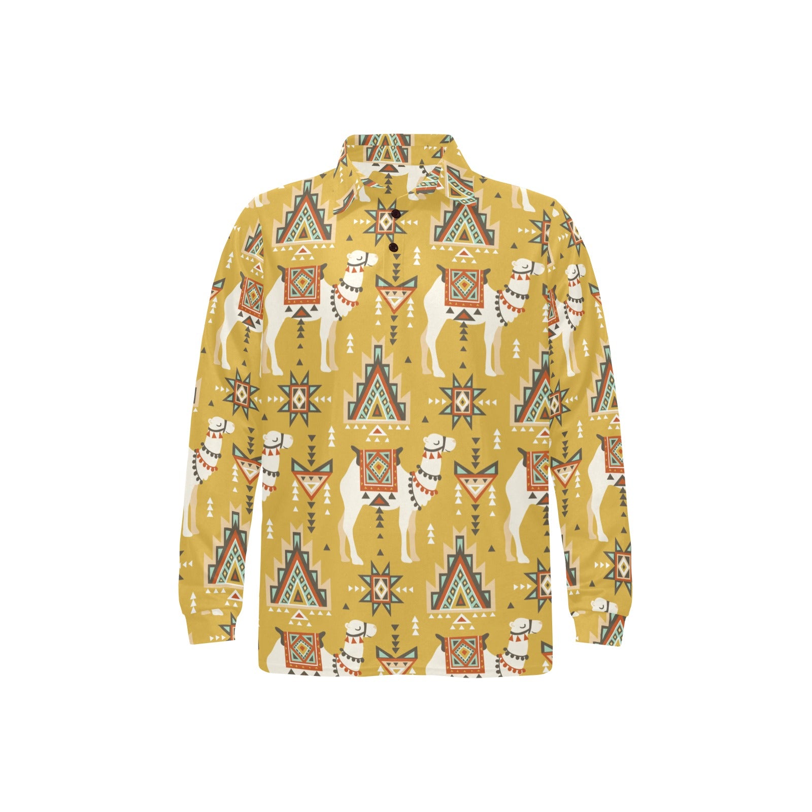 Camels ethnic motif pattern Men's Long Sleeve Polo Shirt