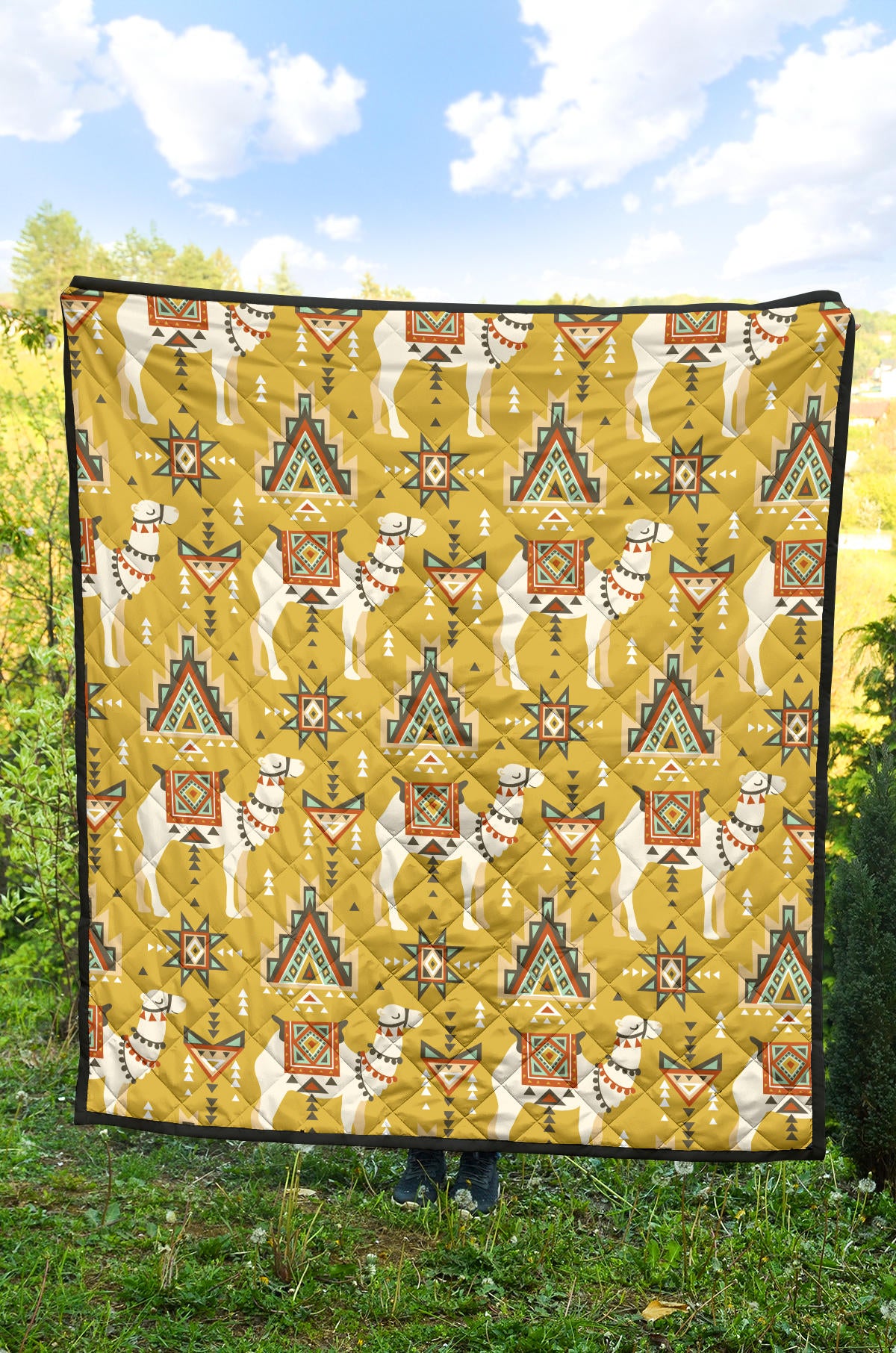 Camels Ethnic Motif Pattern Premium Quilt is a uniqued design and limited item. It made to order, hand printed, and sewn with love in our factory.