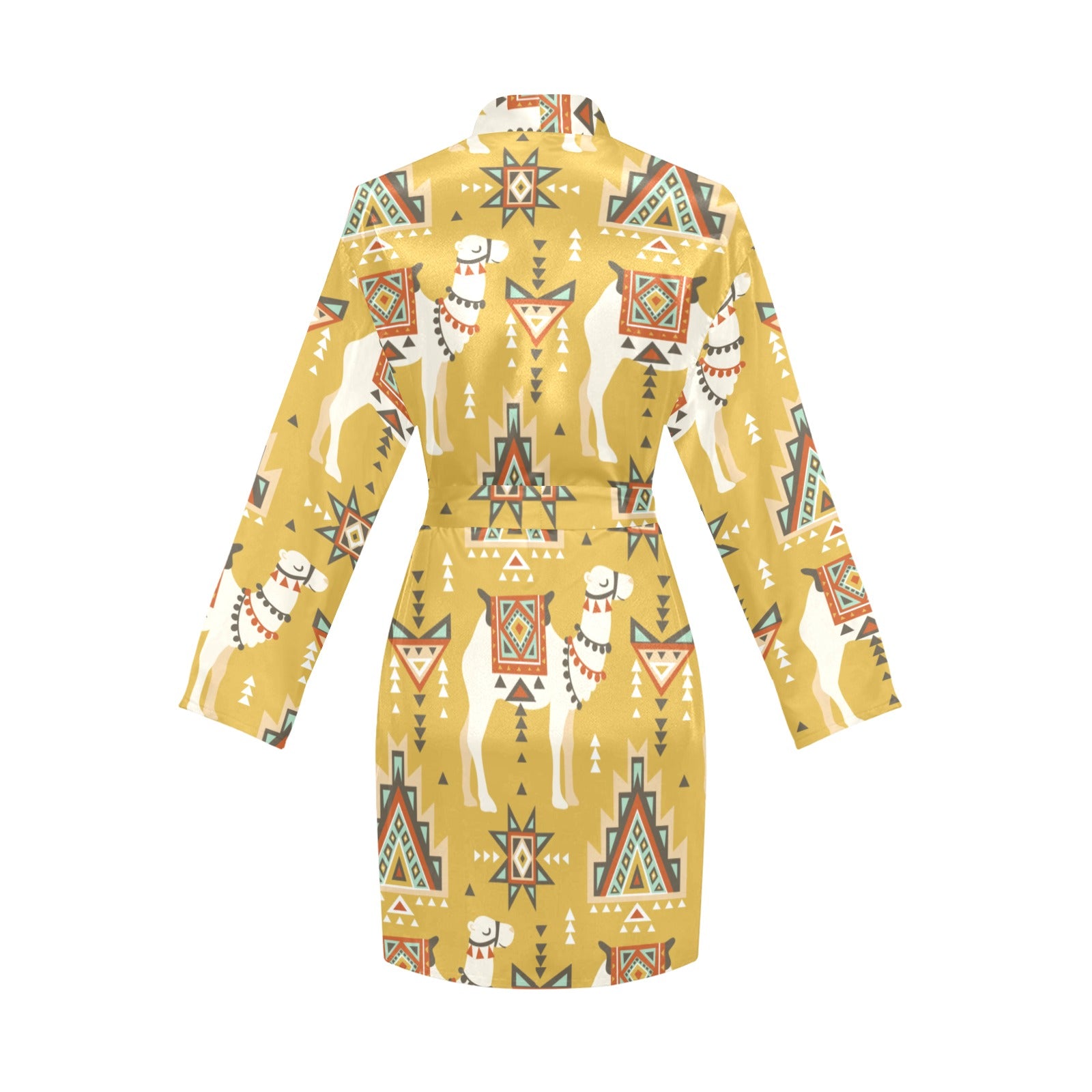 Camels ethnic motif pattern Women's Long Sleeve Belted Night Robe
