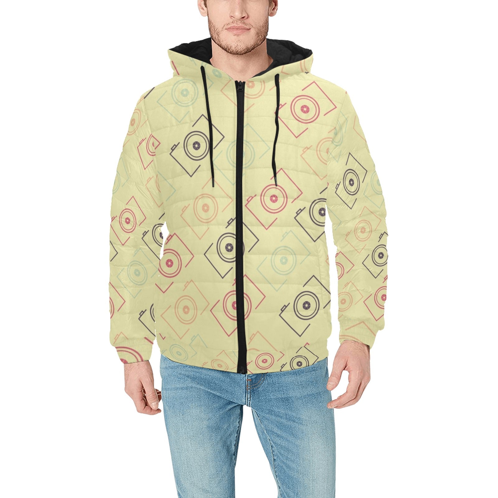 Camera Pattern Print Design 01 Men's Padded Hooded Jacket