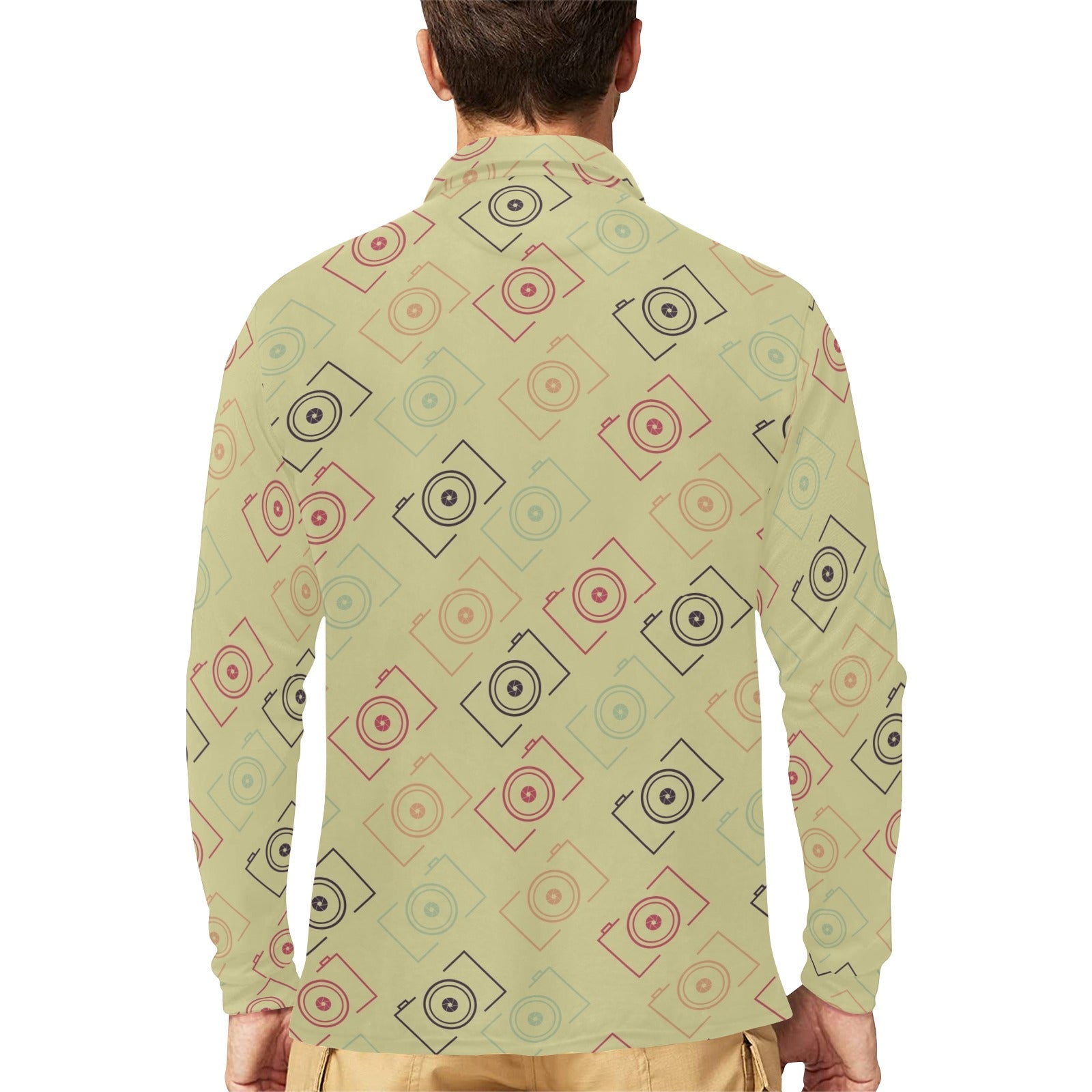 Camera Pattern Print Design 01 Men's Long Sleeve Polo Shirt