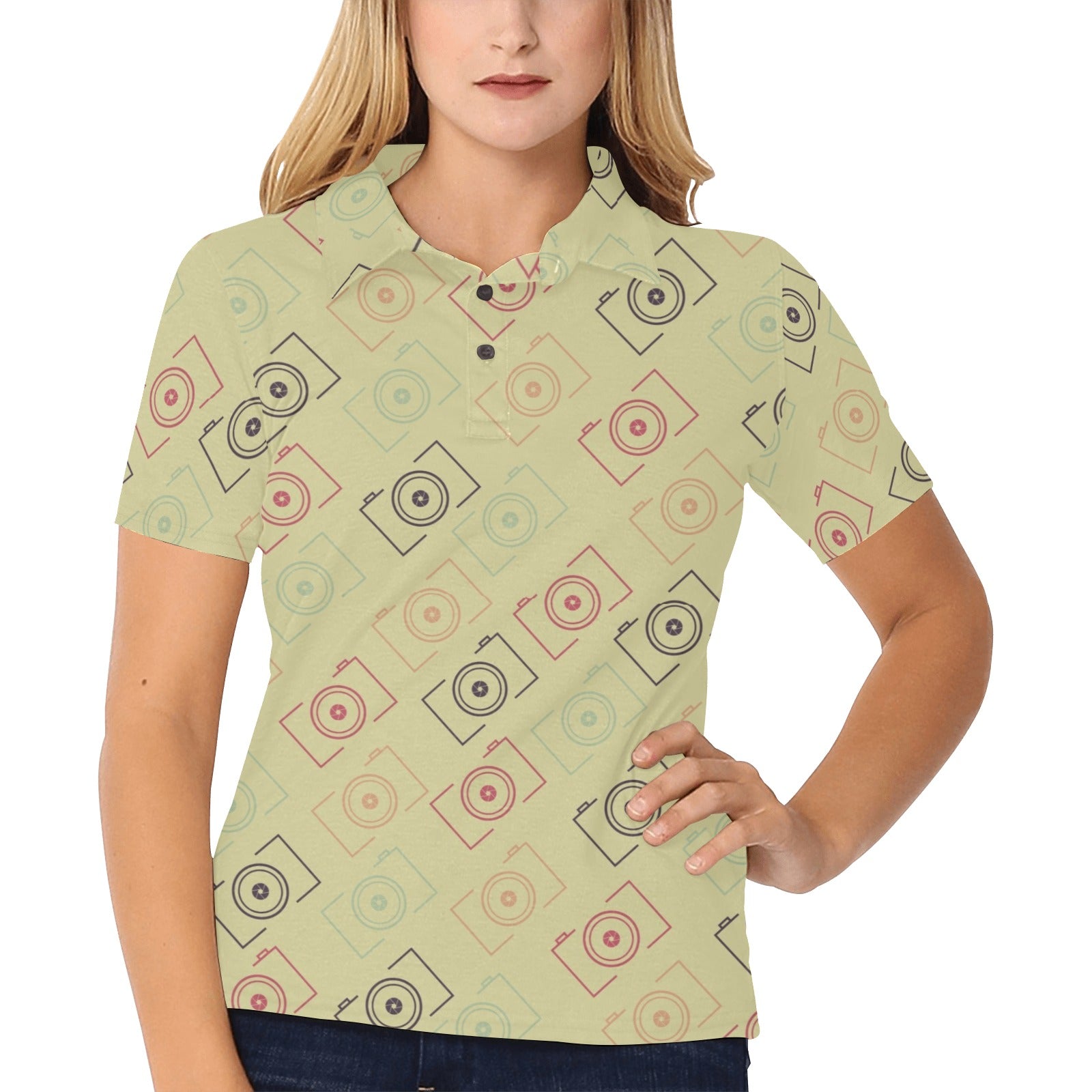 Camera Pattern Print Design 01 Women's All Over Print Polo Shirt