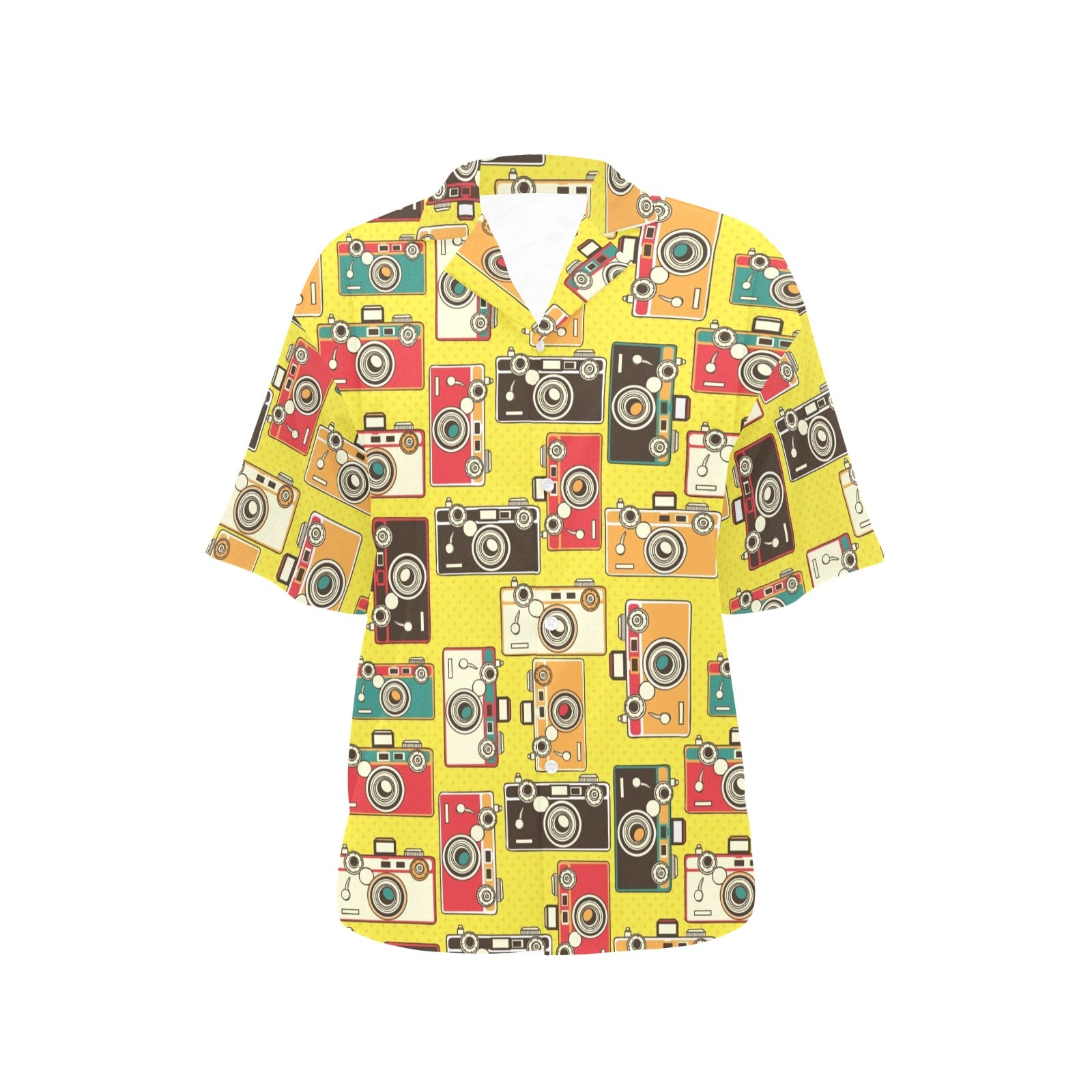 Camera Pattern Print Design 02 Women's All Over Print Hawaiian Shirt