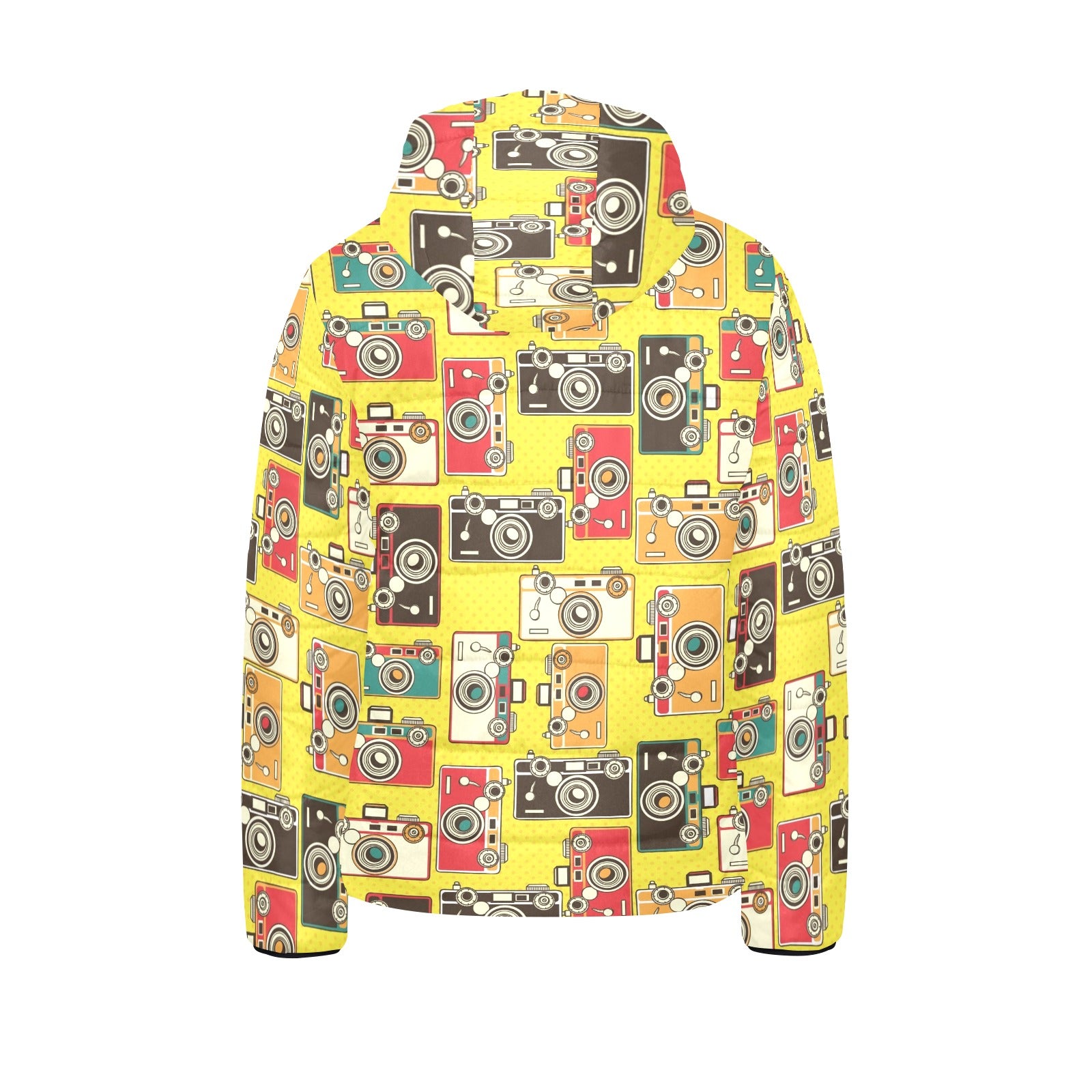 Camera Pattern Print Design 02 Kids' Boys' Girls' Padded Hooded Jacket