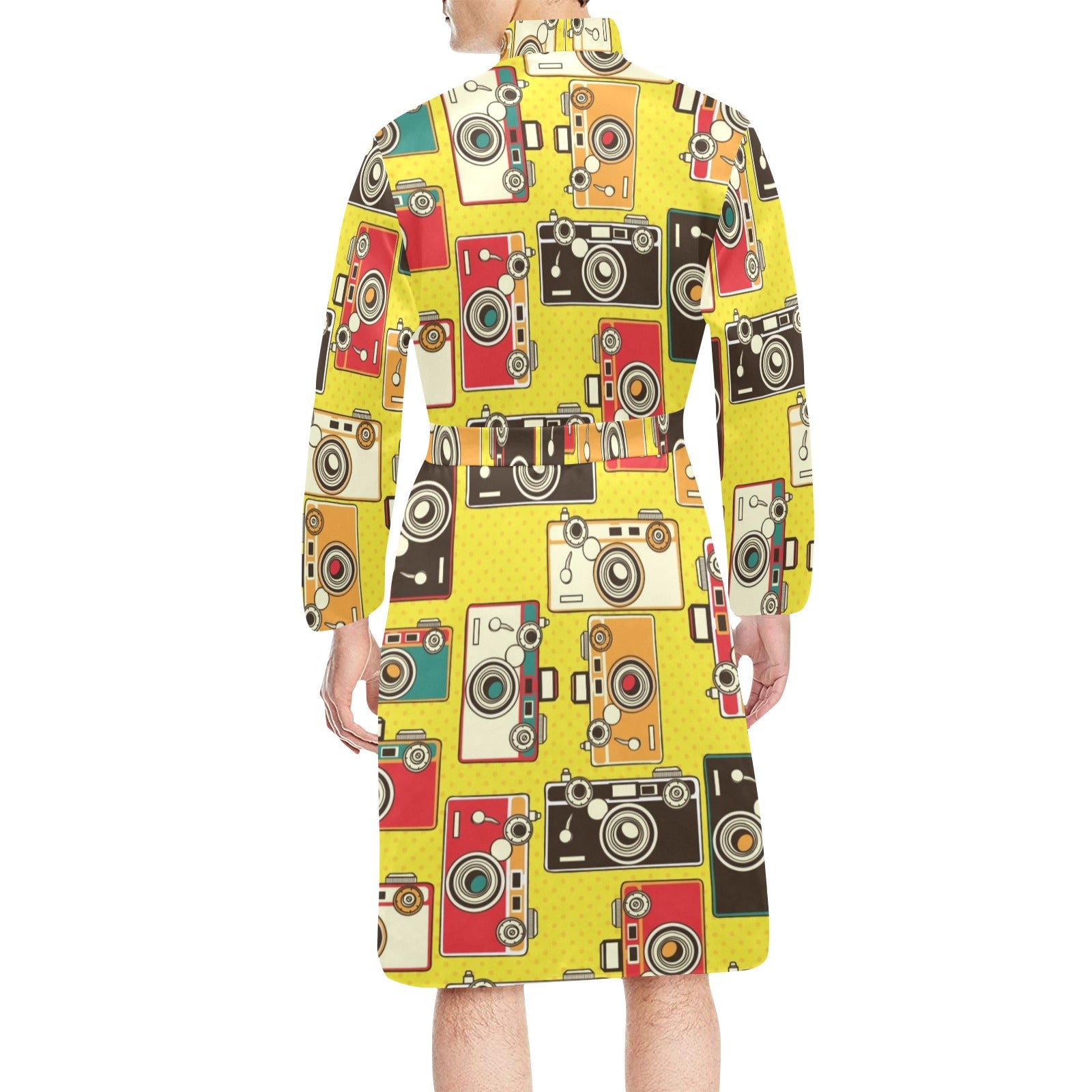 Camera Pattern Print Design 02 Men's Long Sleeve Belted Night Robe