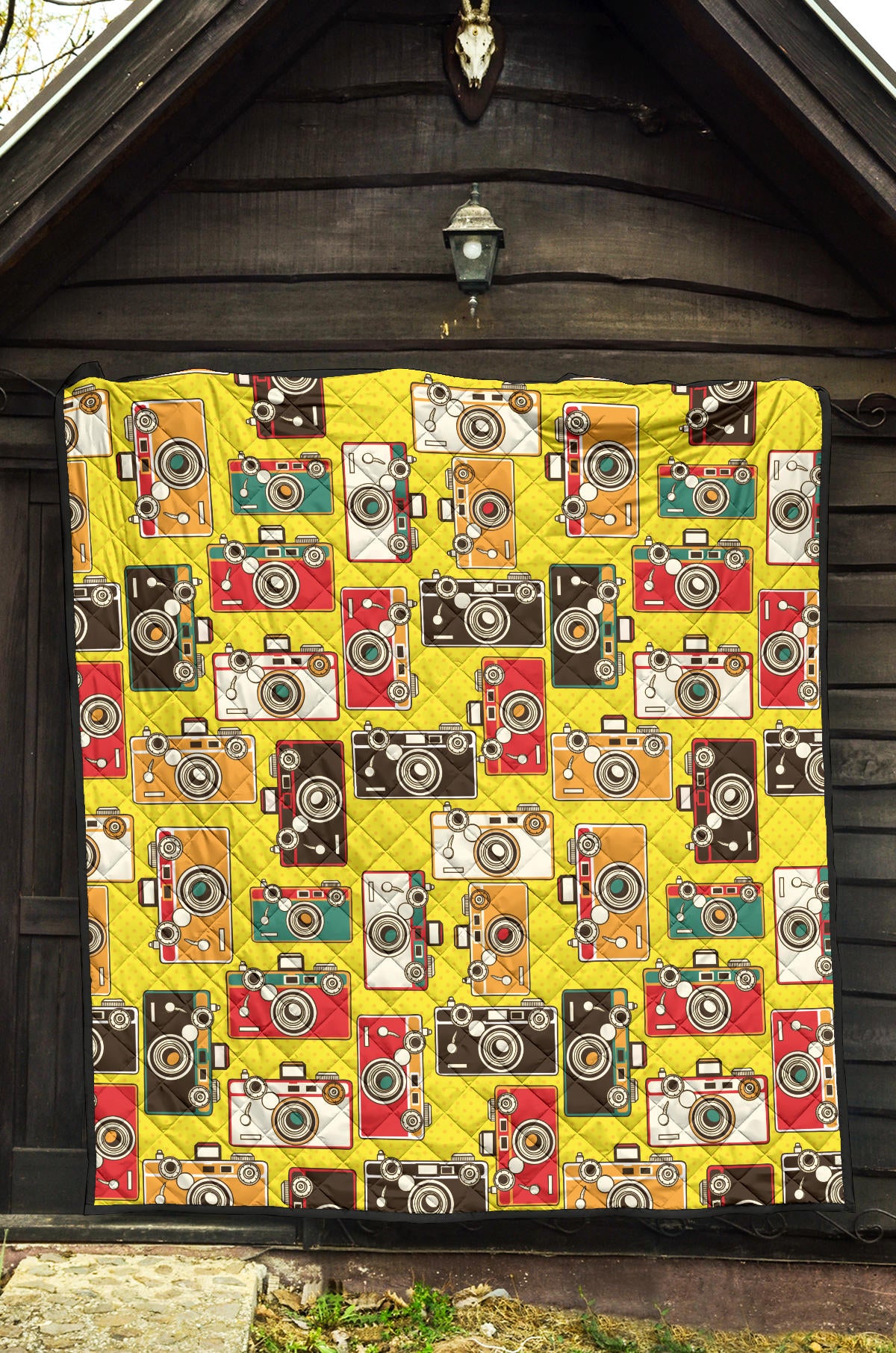 Camera Pattern Print Design 02 Premium Quilt is a uniqued design and limited item. It made to order, hand printed, and sewn with love in our factory.