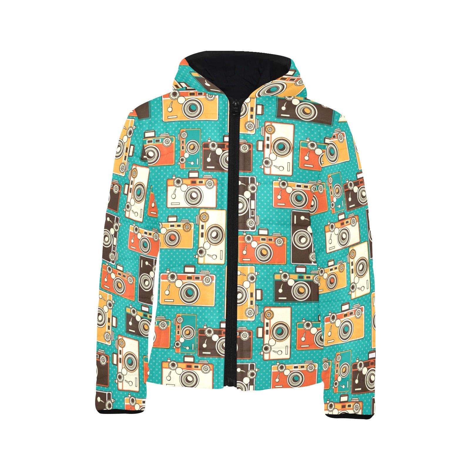 Camera Pattern Print Design 03 Kids' Boys' Girls' Padded Hooded Jacket