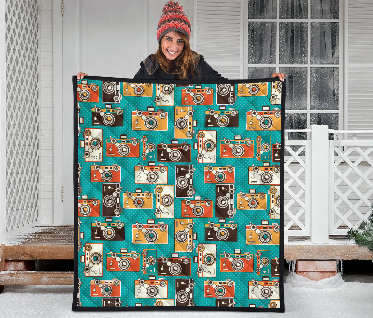 Camera Pattern Print Design 03 Premium Quilt is a uniqued design and limited item. It made to order, hand printed, and sewn with love in our factory.