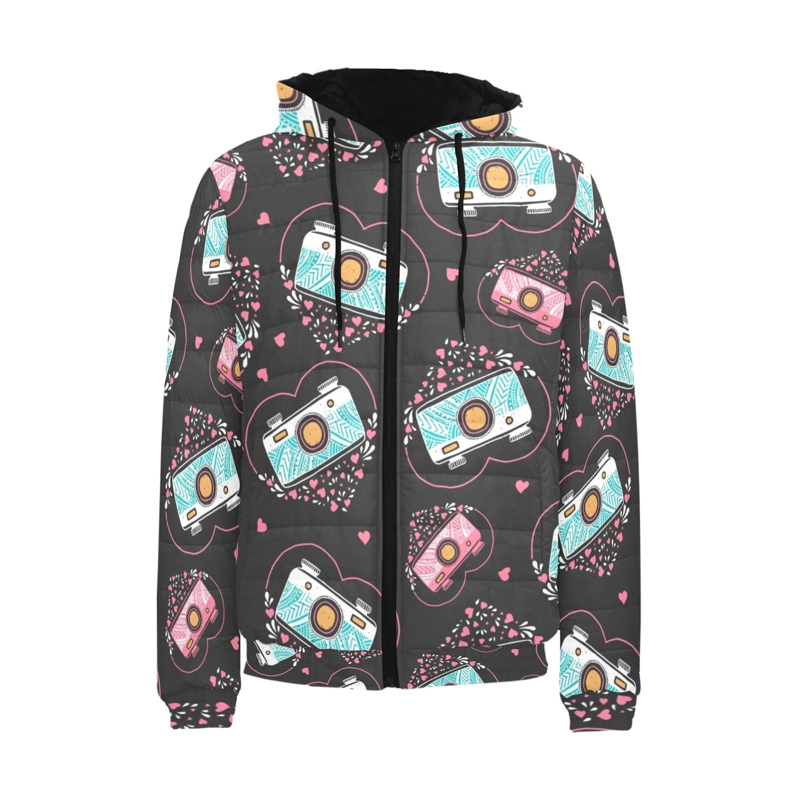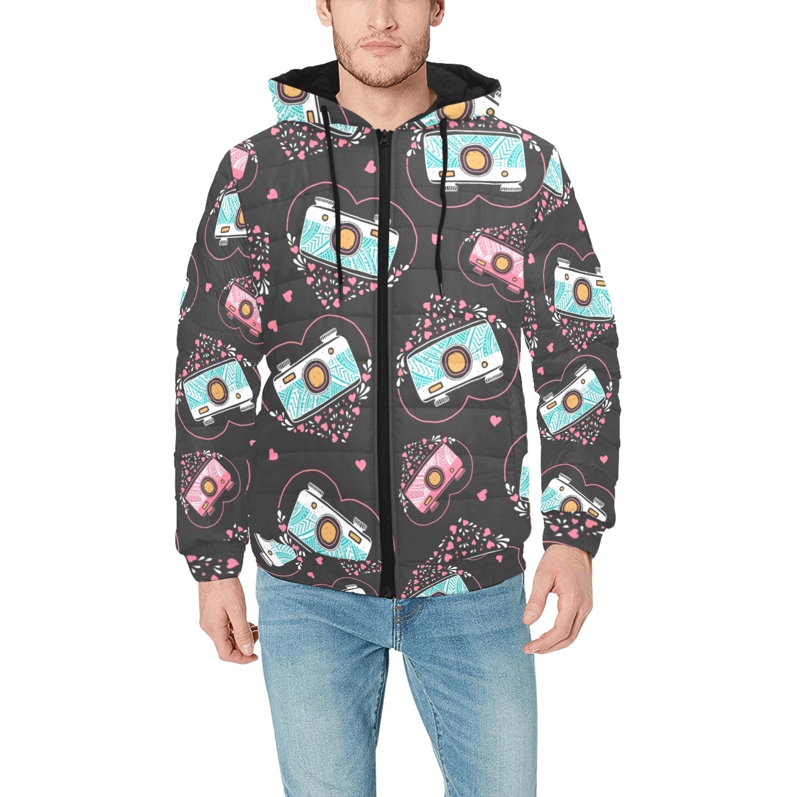 Camera Pattern Print Design 04 Men's Padded Hooded Jacket