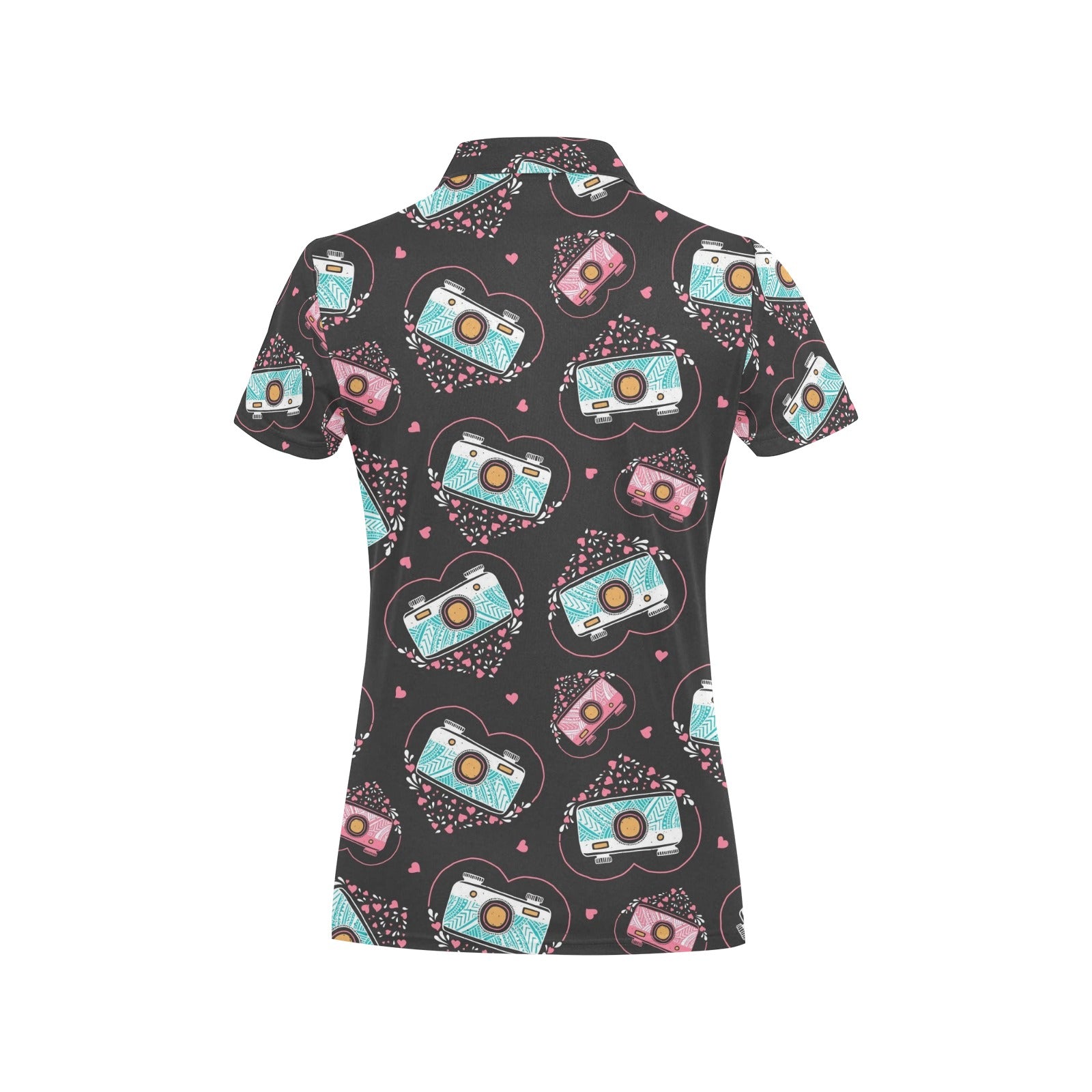 Camera Pattern Print Design 04 Women's All Over Print Polo Shirt