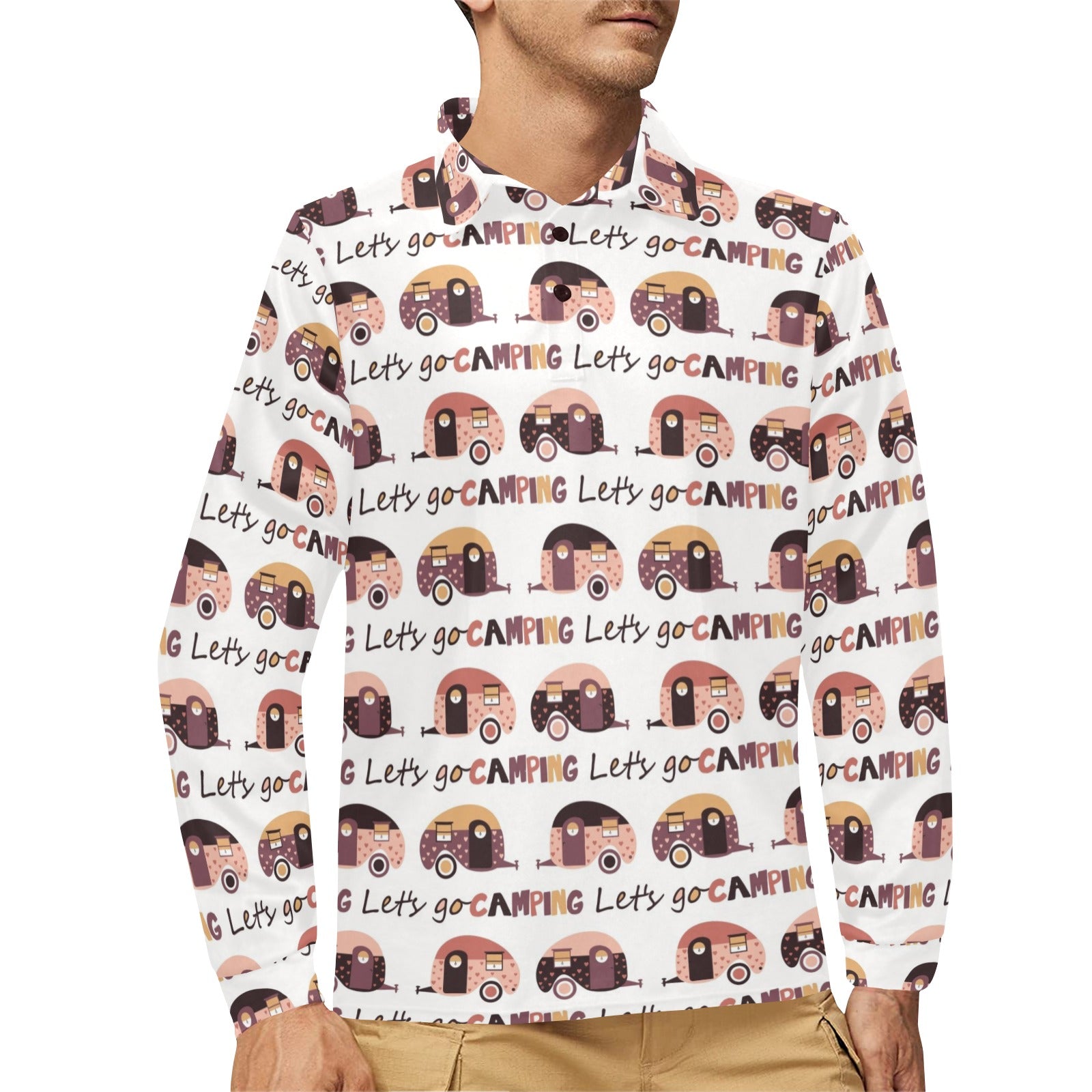 Camper Van Pattern Print Design 01 Men's Long Sleeve Polo Shirt