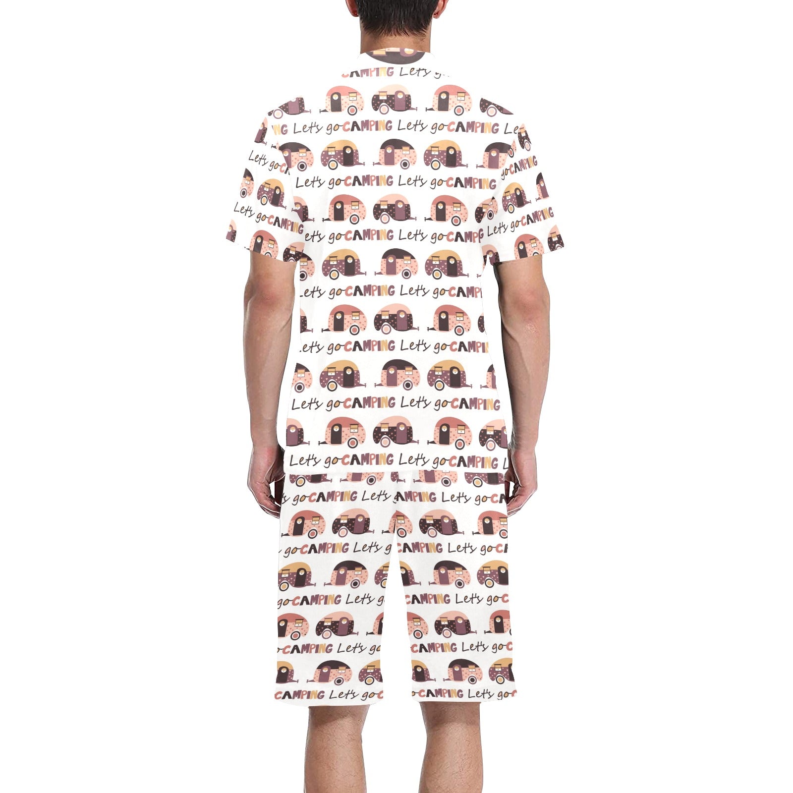 Camper Van Pattern Print Design 01 Men's V-Neck Short Pajama Set