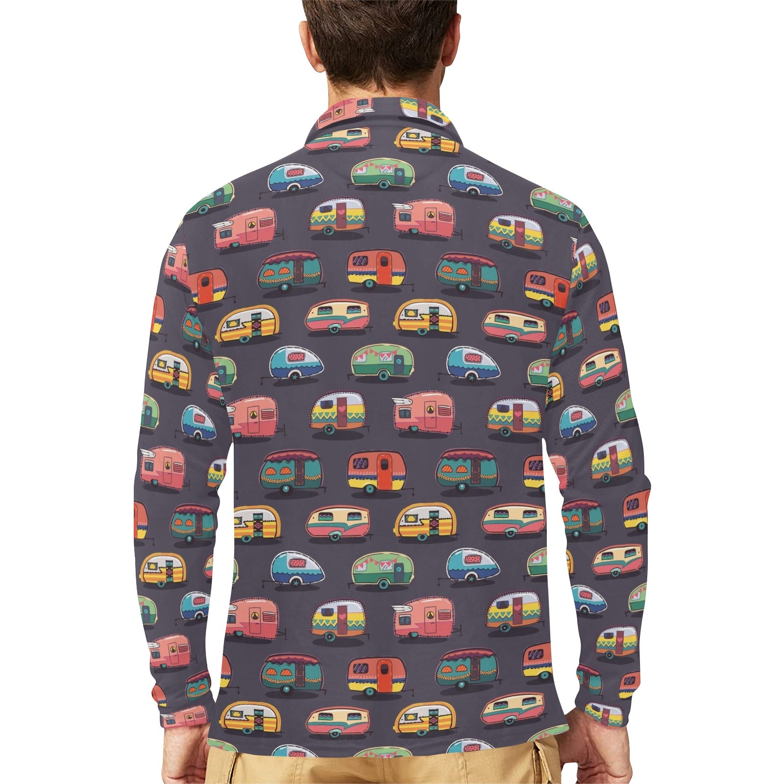 Camper Van Pattern Print Design 02 Men's Long Sleeve Polo Shirt
