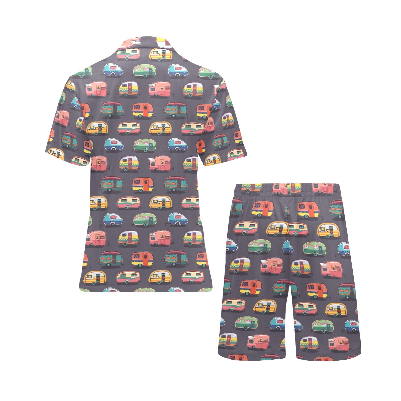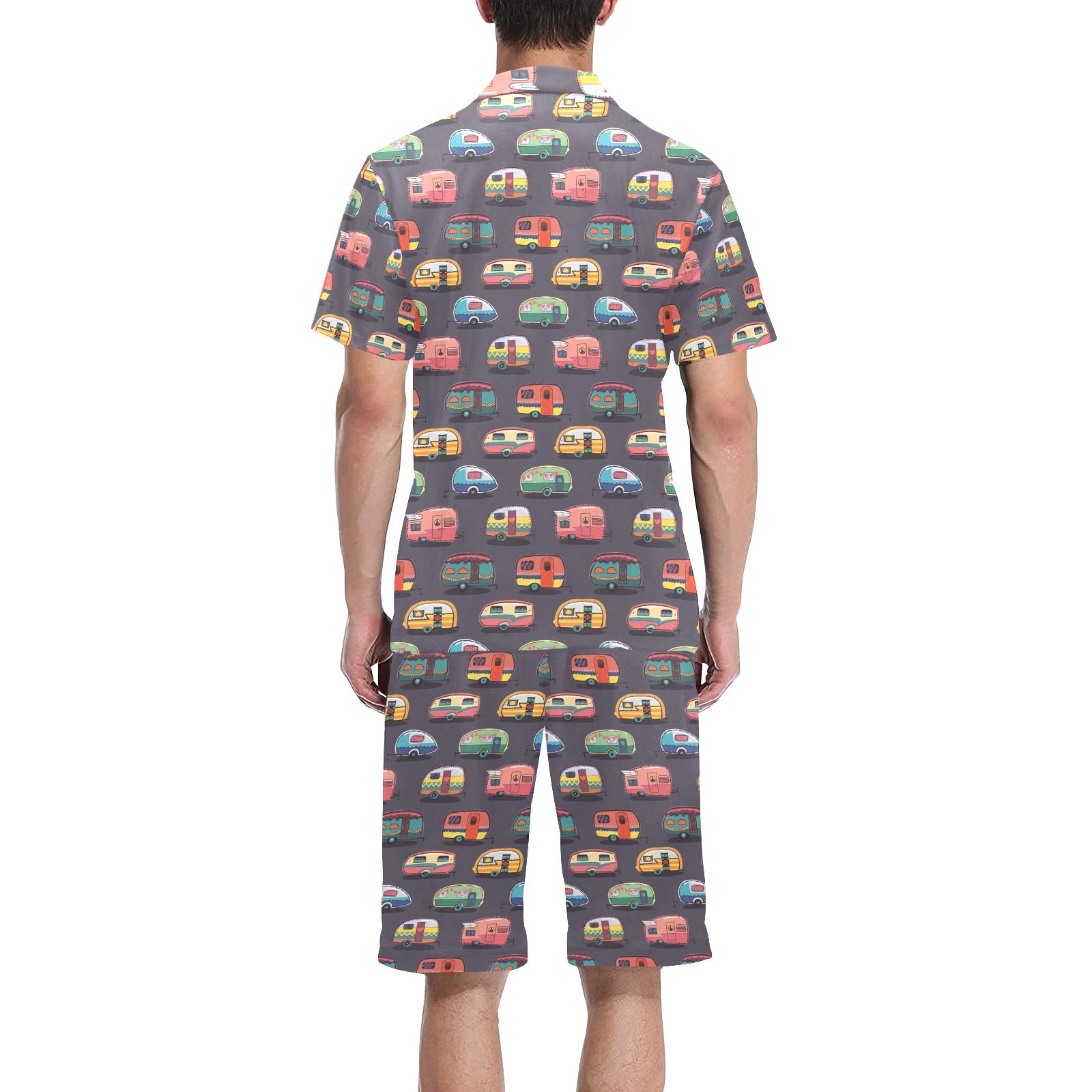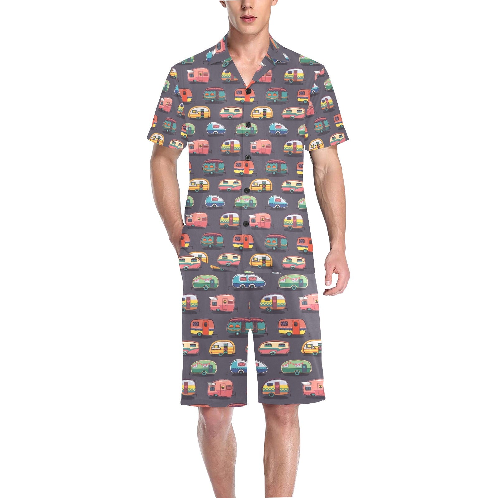 Camper Van Pattern Print Design 02 Men's V-Neck Short Pajama Set