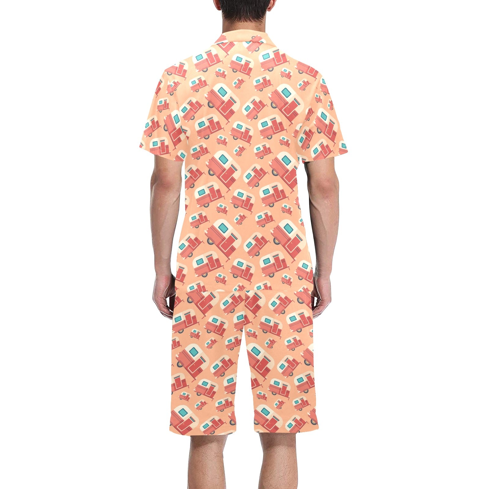 Camper Van Pattern Print Design 03 Men's V-Neck Short Pajama Set