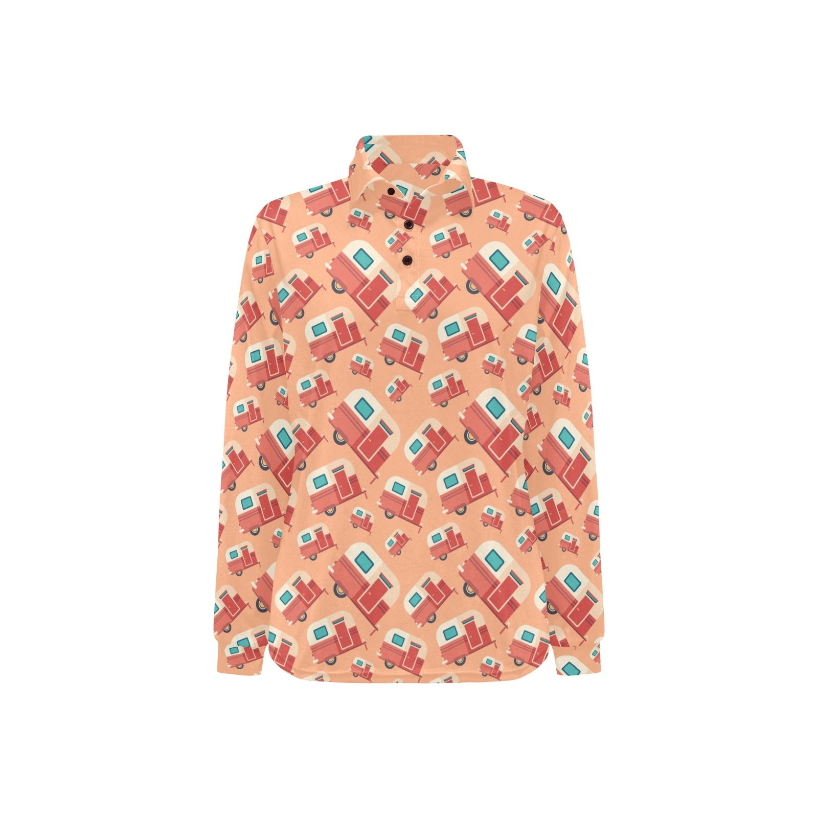 Camper Van Pattern Print Design 03 Women's Long Sleeve Polo Shirt