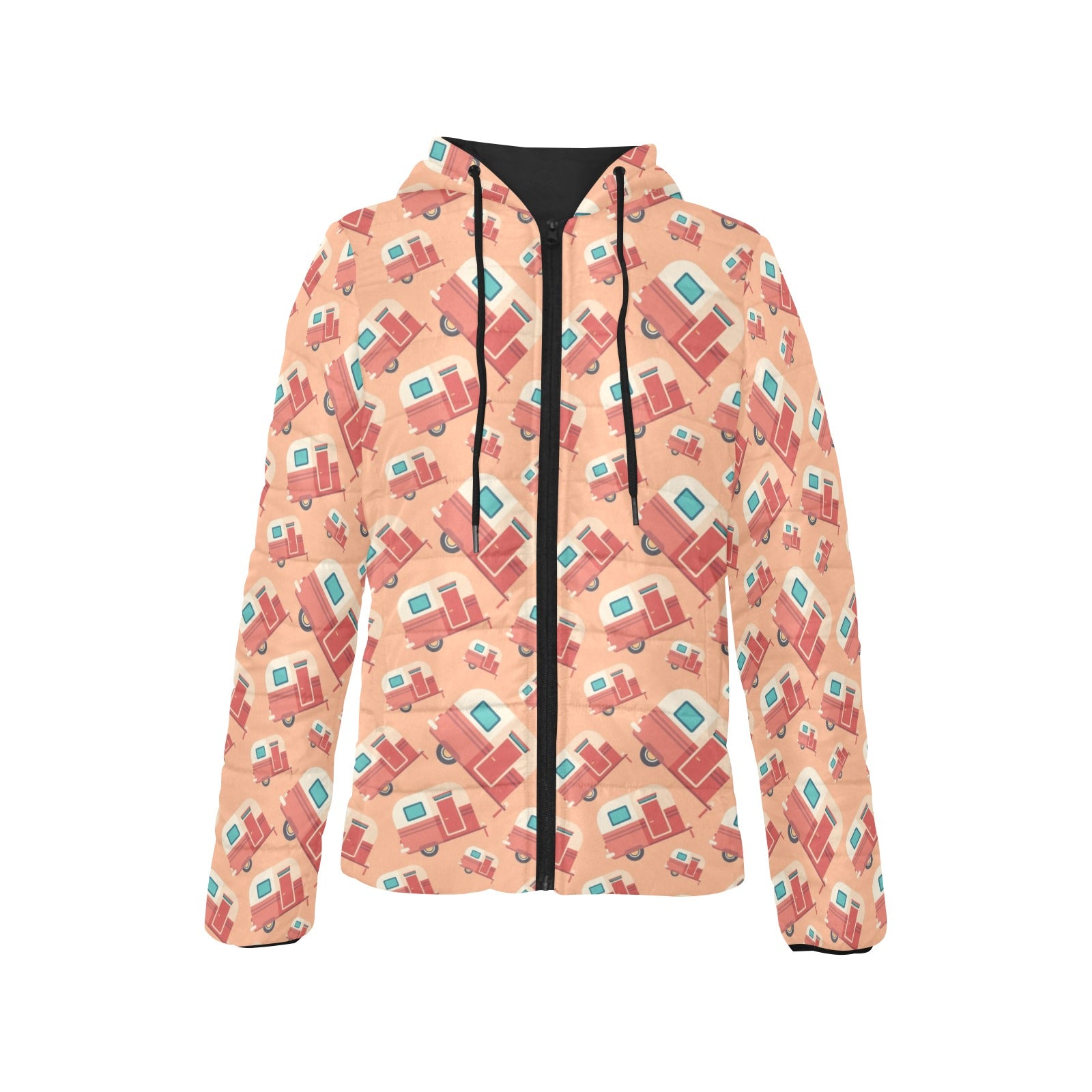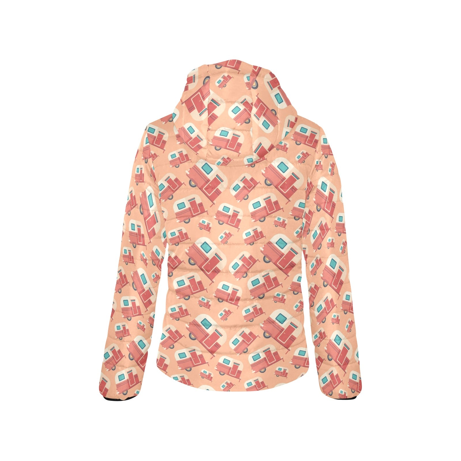 Camper Van Pattern Print Design 03 Women's Padded Hooded Jacket