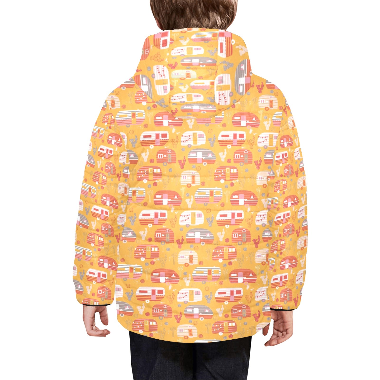 Camper Van Pattern Print Design 04 Kids' Boys' Girls' Padded Hooded Jacket