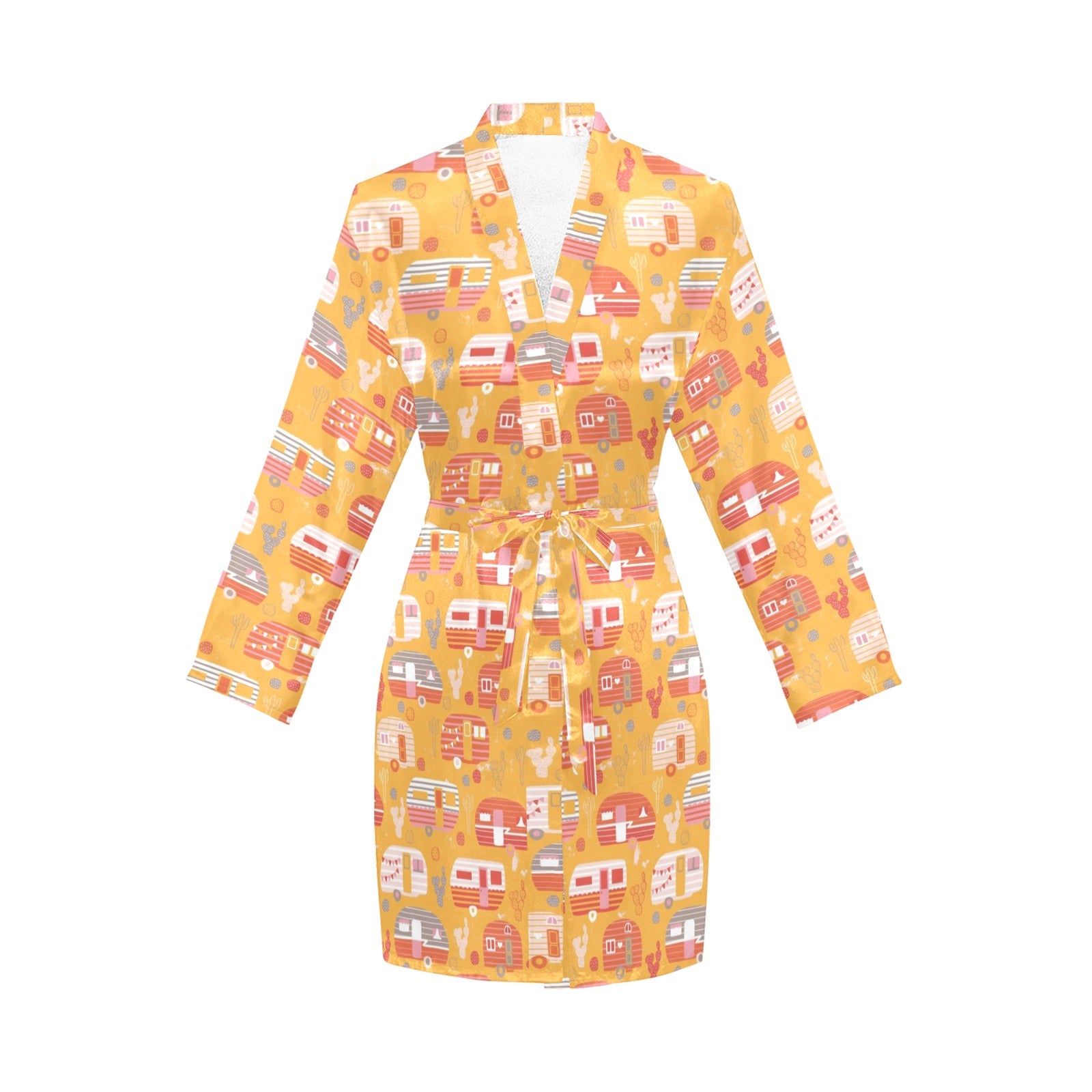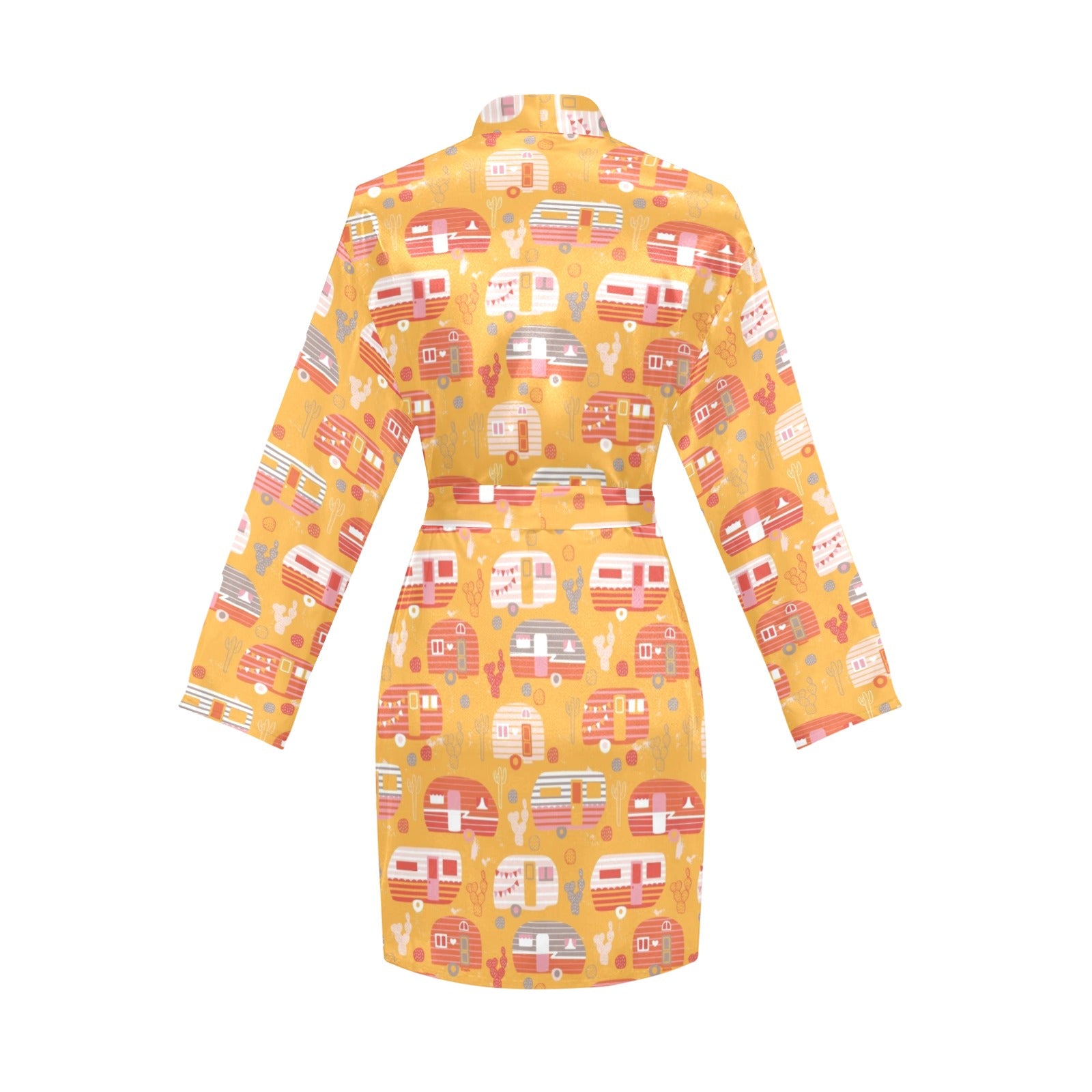 Camper Van Pattern Print Design 04 Women's Long Sleeve Belted Night Robe