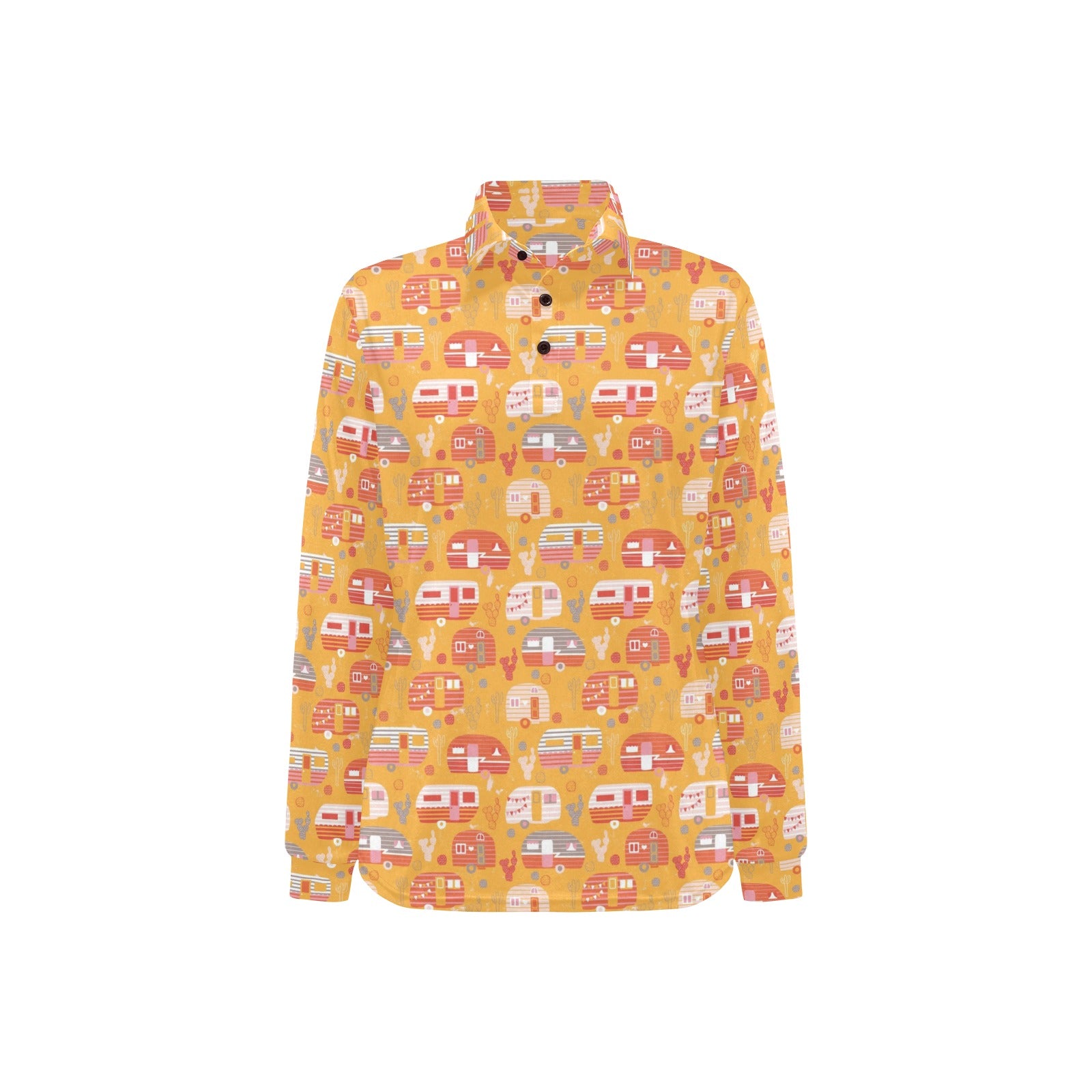 Camper Van Pattern Print Design 04 Women's Long Sleeve Polo Shirt