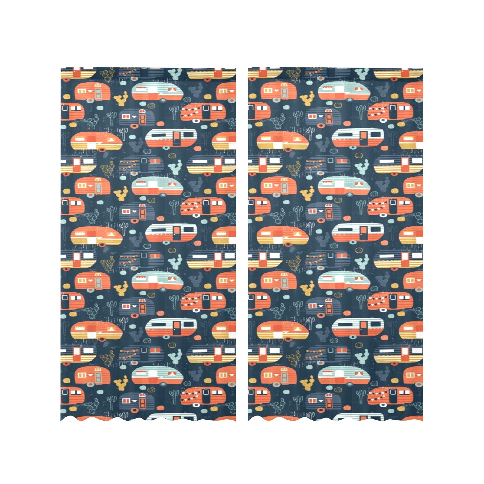 Camper Van Pattern Print Design 05 Gauze Curtain