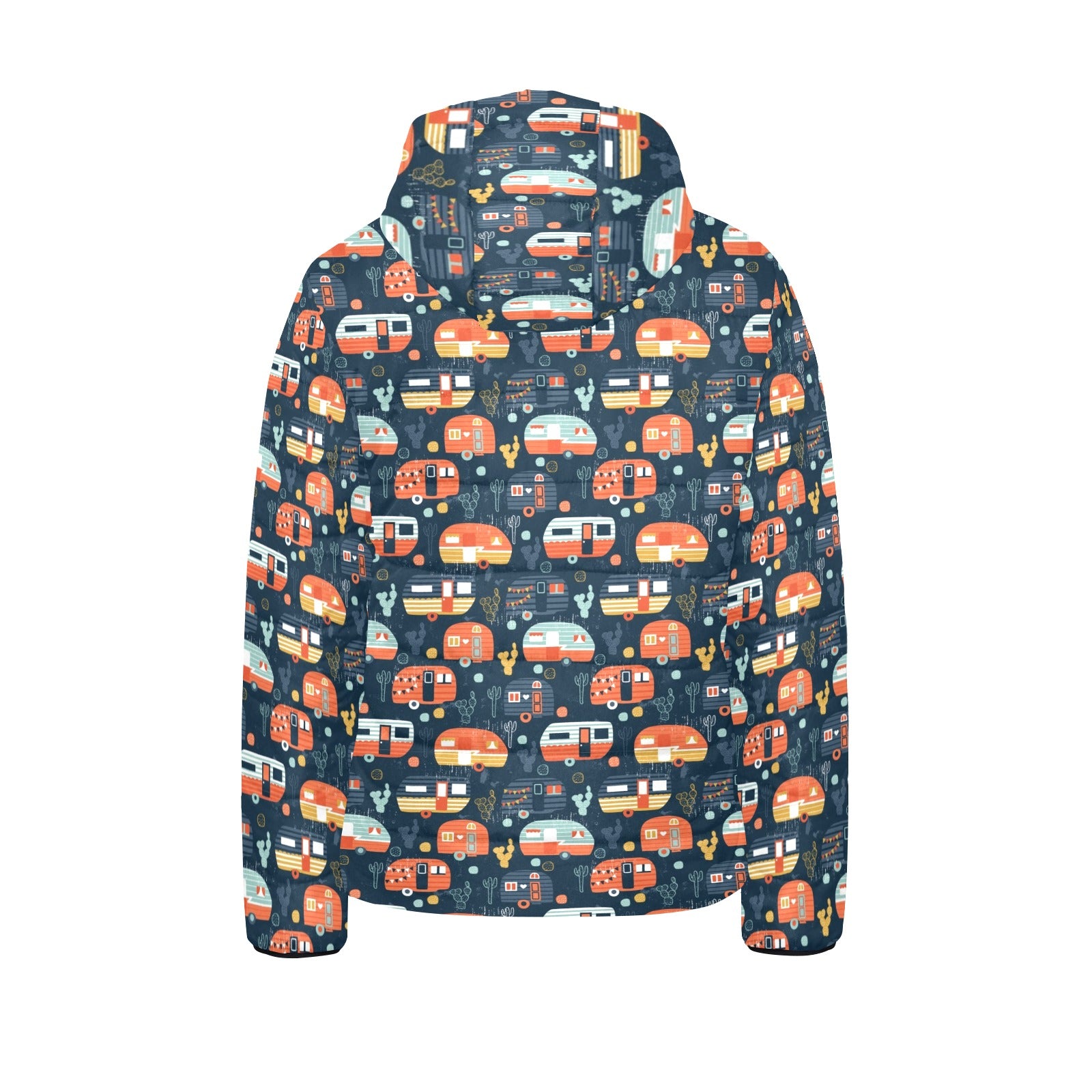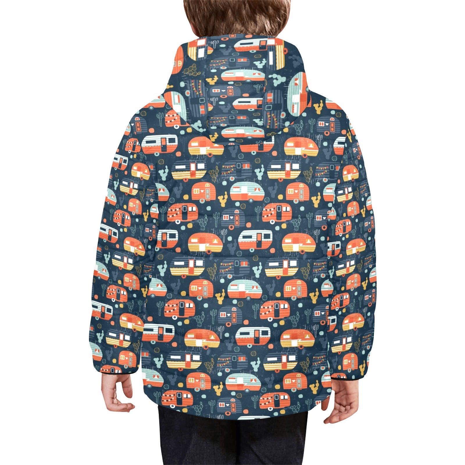 Camper Van Pattern Print Design 05 Kids' Boys' Girls' Padded Hooded Jacket