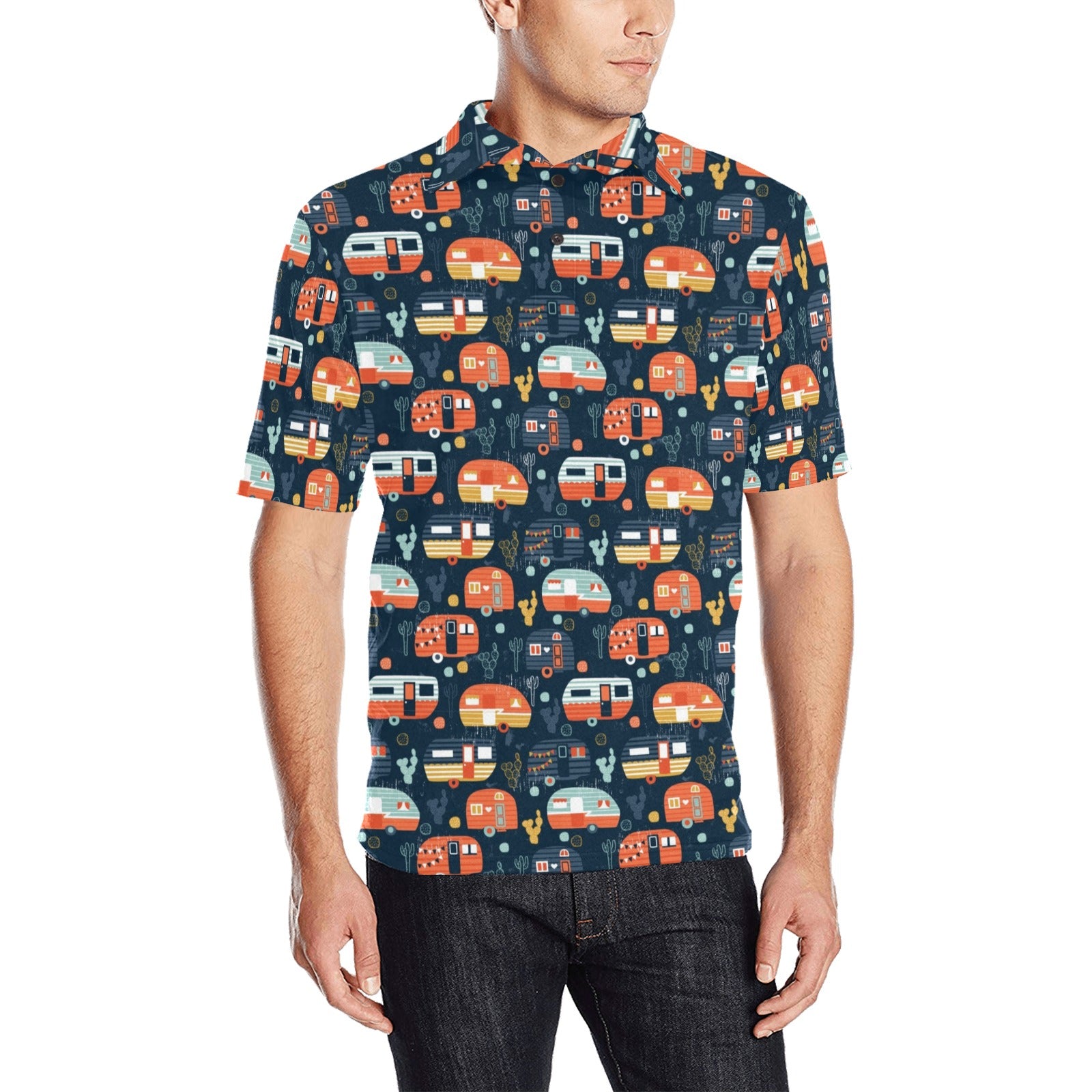 Camper Van Pattern Print Design 05 Men's All Over Print Polo Shirt