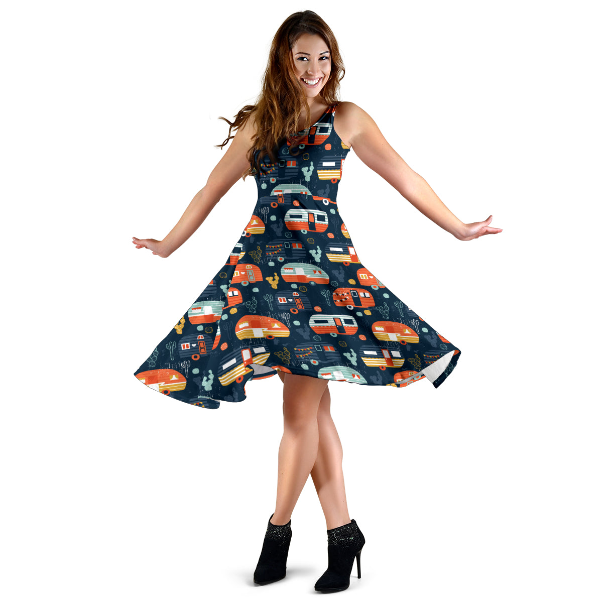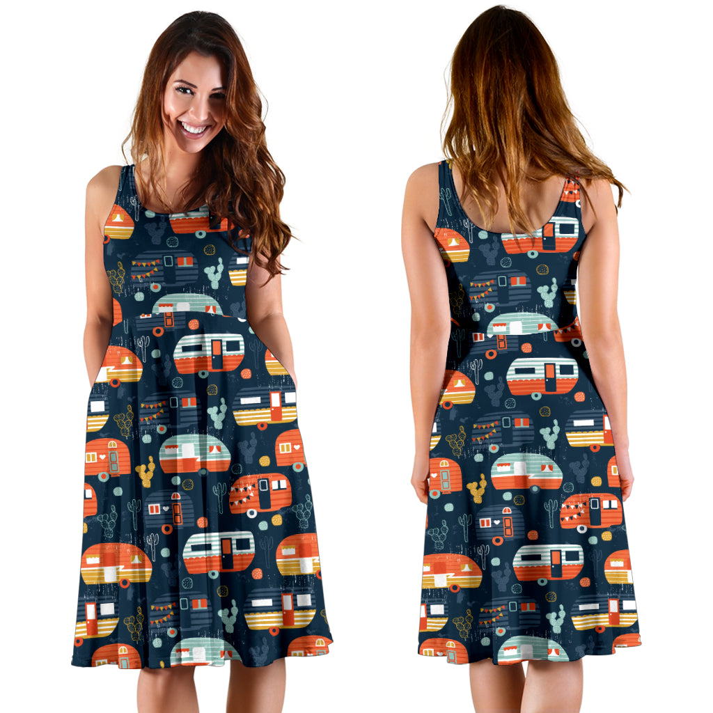 Camper Van Pattern Print Design 05 Sleeveless Midi Dress