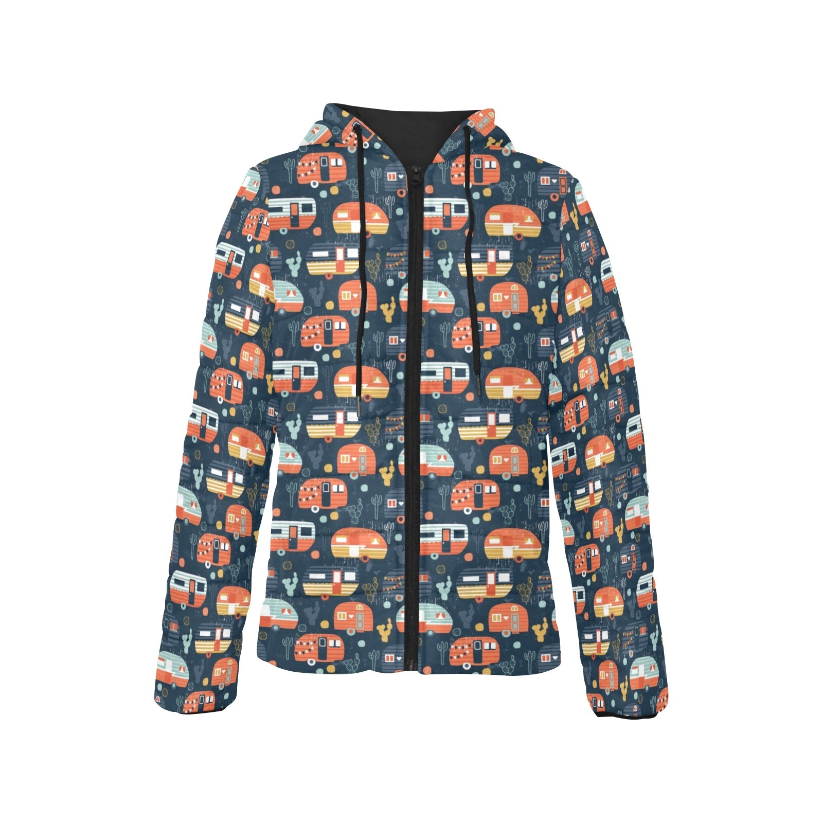 Camper Van Pattern Print Design 05 Women's Padded Hooded Jacket