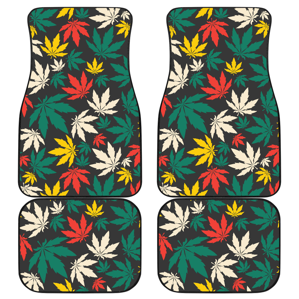 Canabis Marijuana Weed Pattern Print Design 02 Front and Back Car Mats