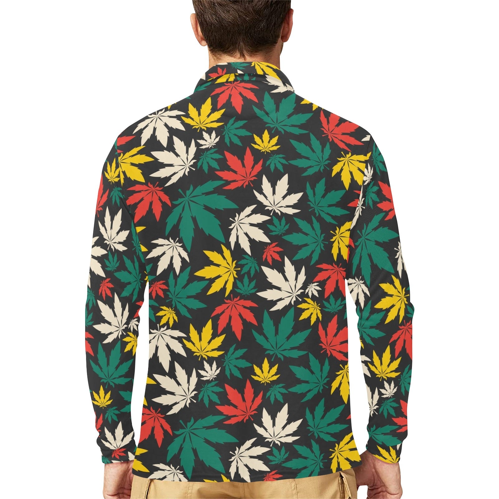 Canabis Marijuana Weed Pattern Print Design 02 Men's Long Sleeve Polo Shirt