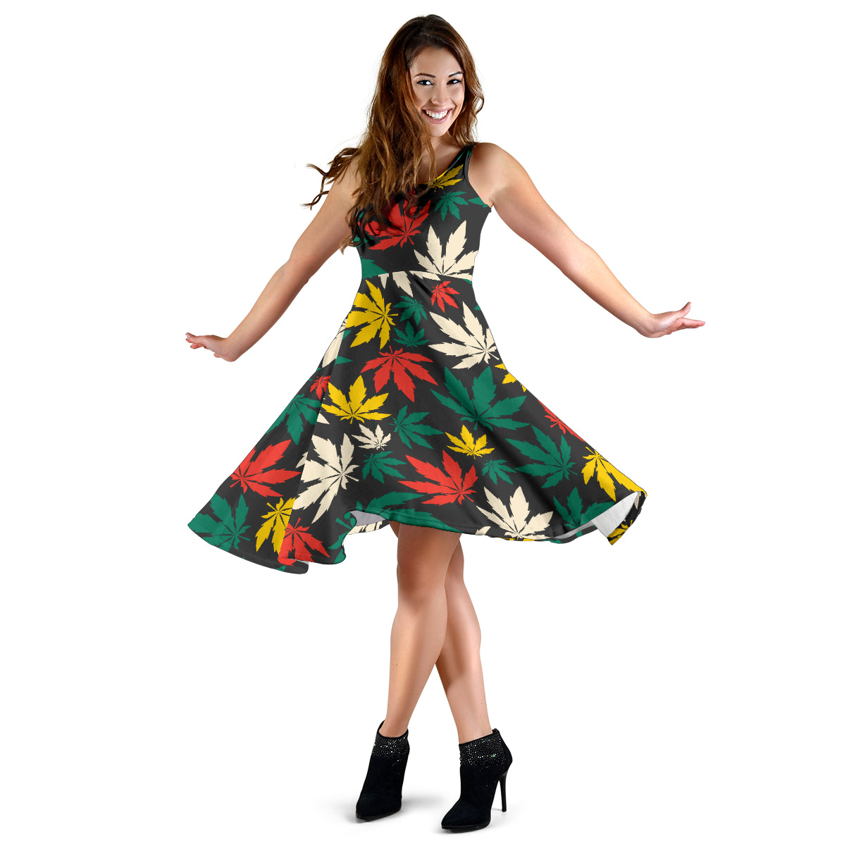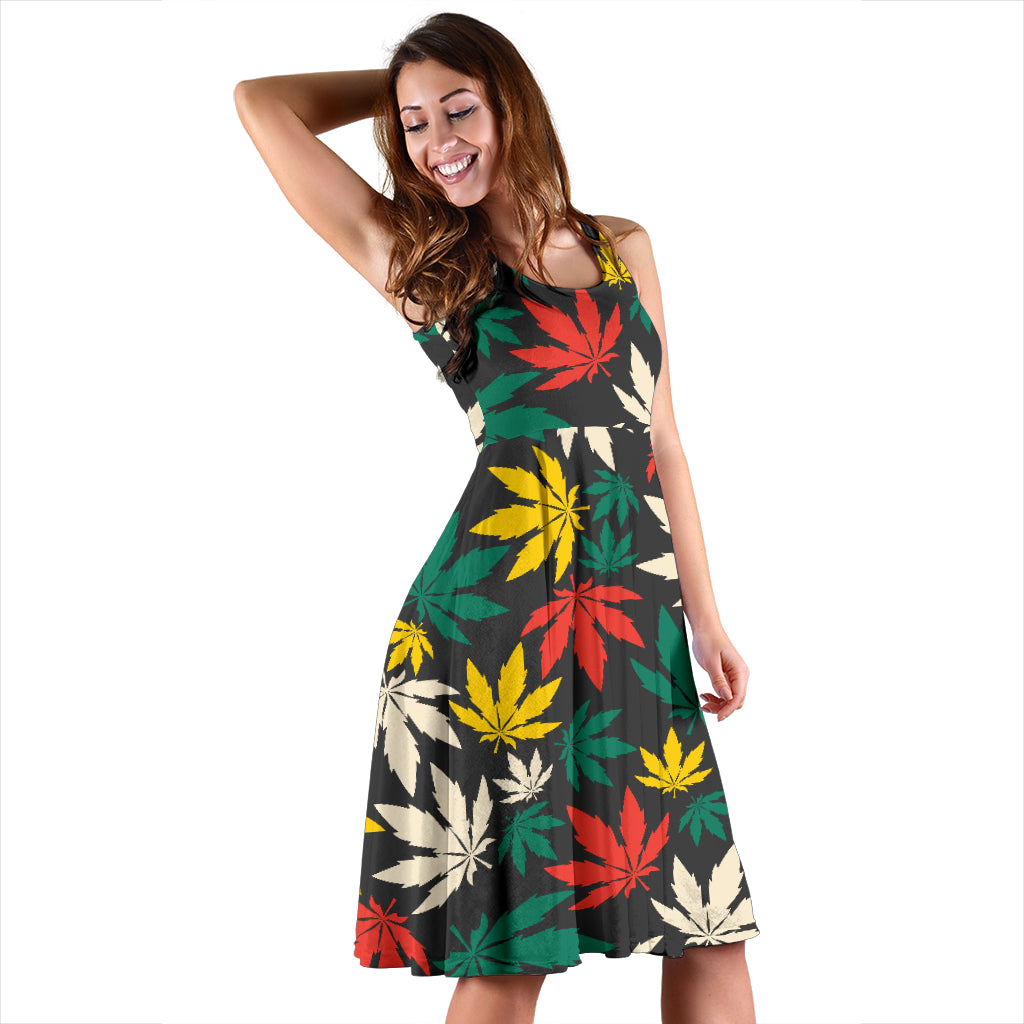 Canabis Marijuana Weed Pattern Print Design 02 Sleeveless Midi Dress