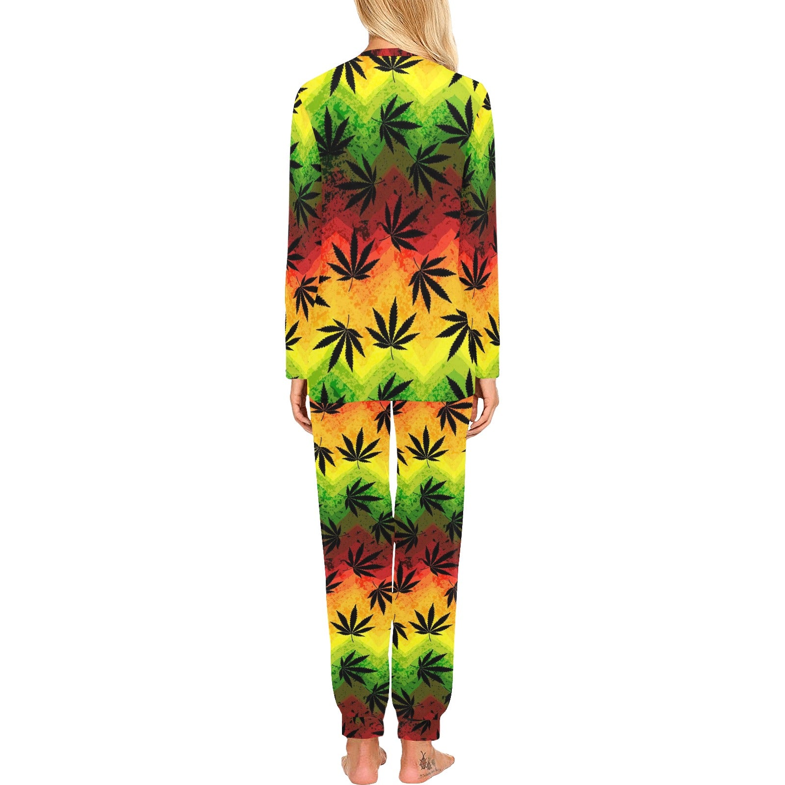Canabis Marijuana Weed Pattern Print Design 03 Women's All Over Print Pajama Set