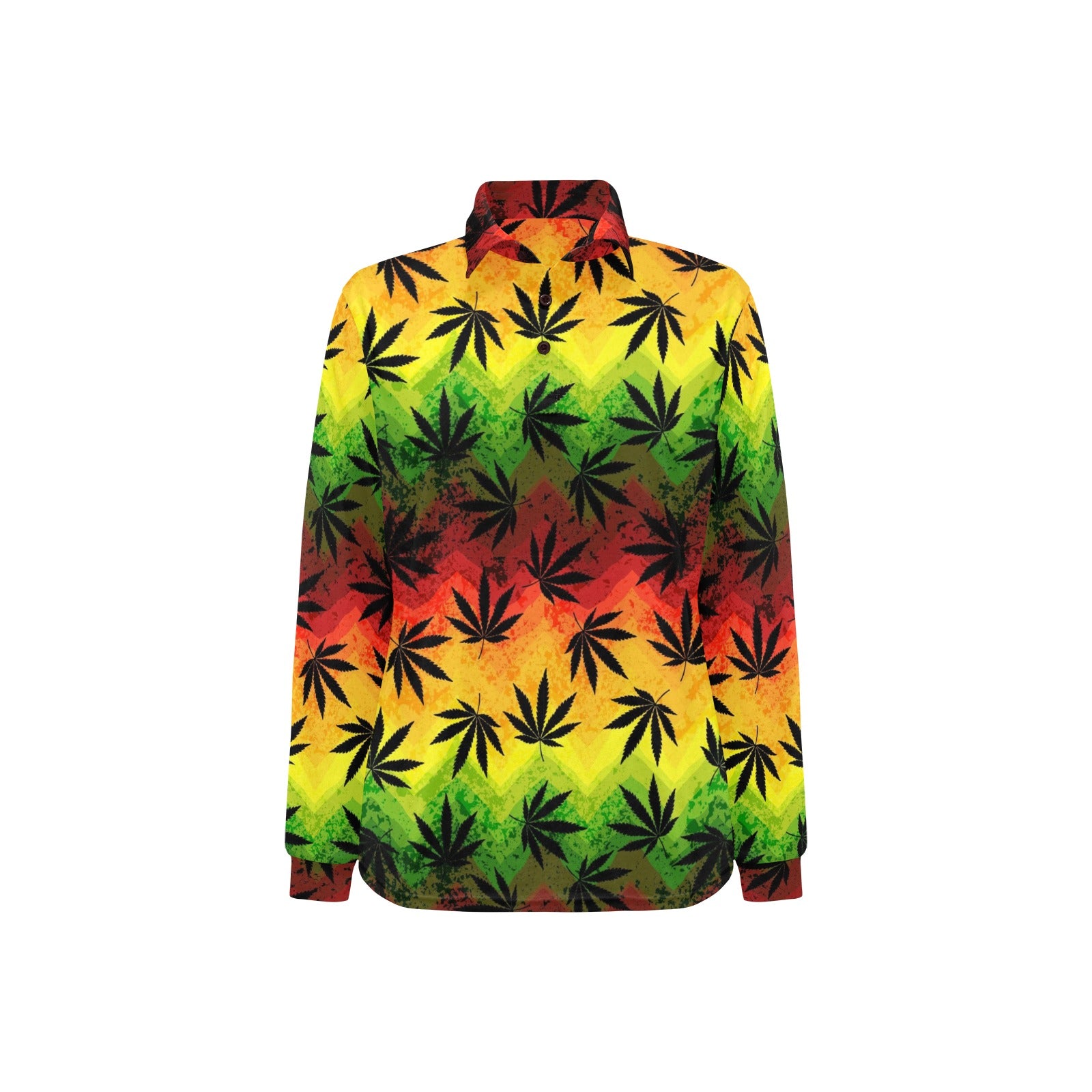 Canabis Marijuana Weed Pattern Print Design 03 Women's Long Sleeve Polo Shirt