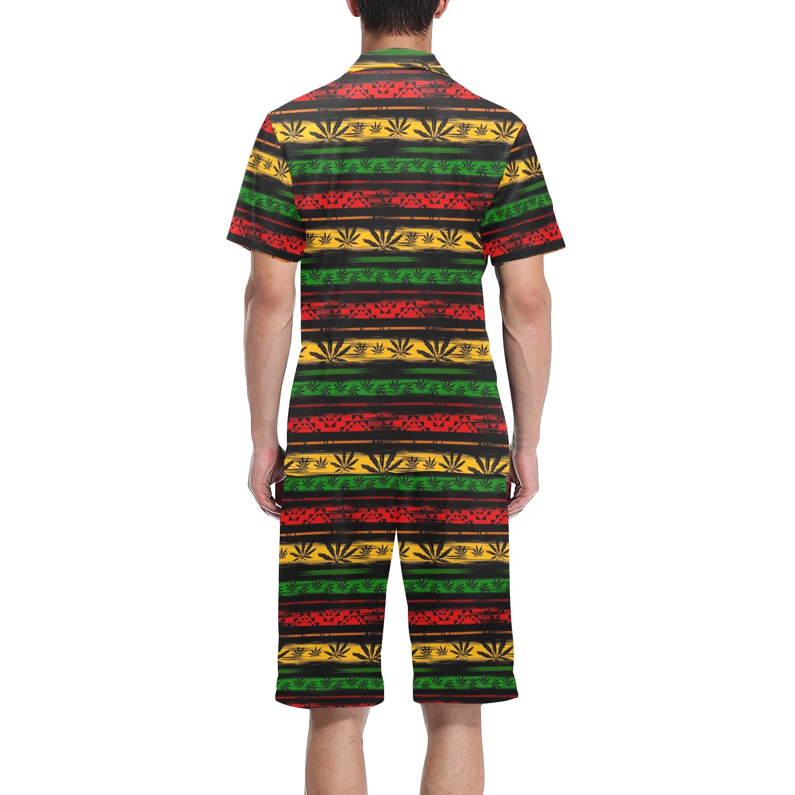 Canabis Marijuana Weed Pattern Print Design 04 Men's V-Neck Short Pajama Set