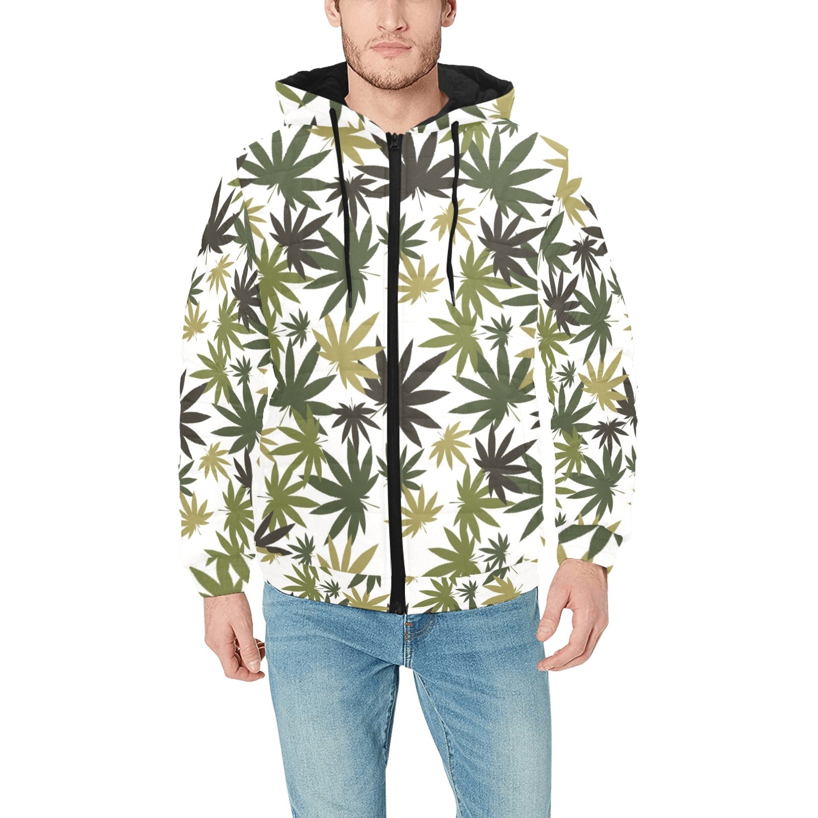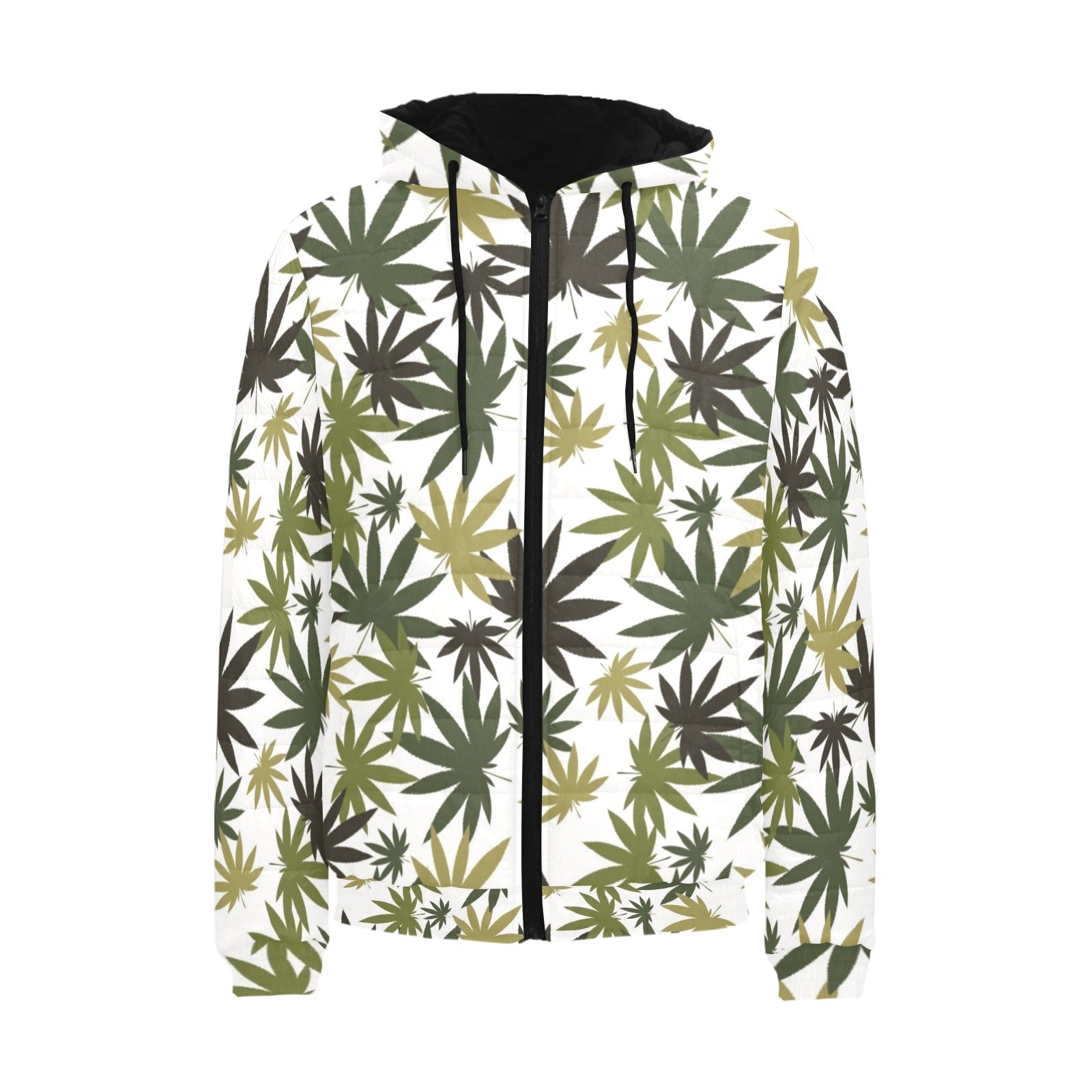 Canabis Marijuana Weed Pattern Print Design 05 Men's Padded Hooded Jacket