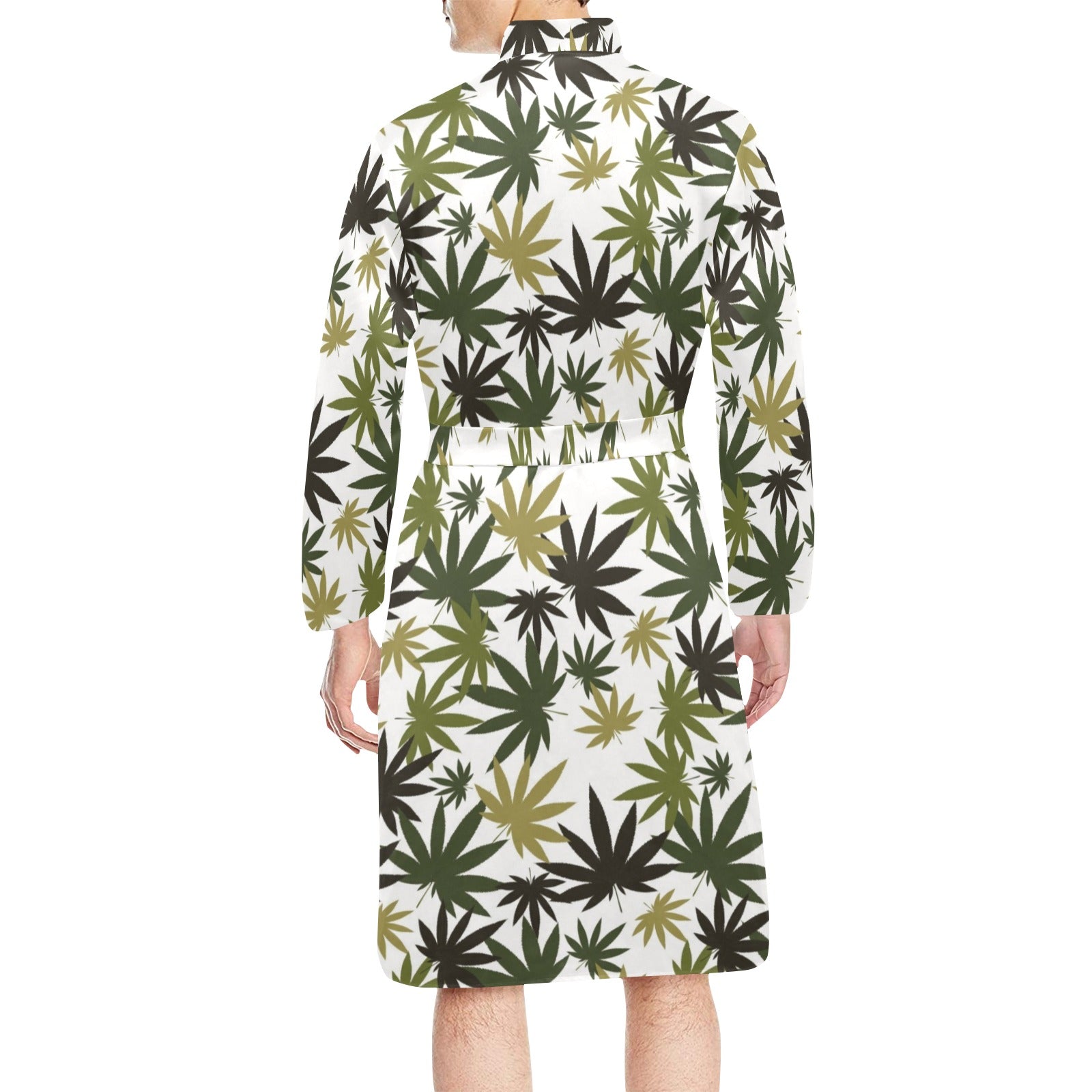 Canabis Marijuana Weed Pattern Print Design 05 Men's Long Sleeve Belted Night Robe